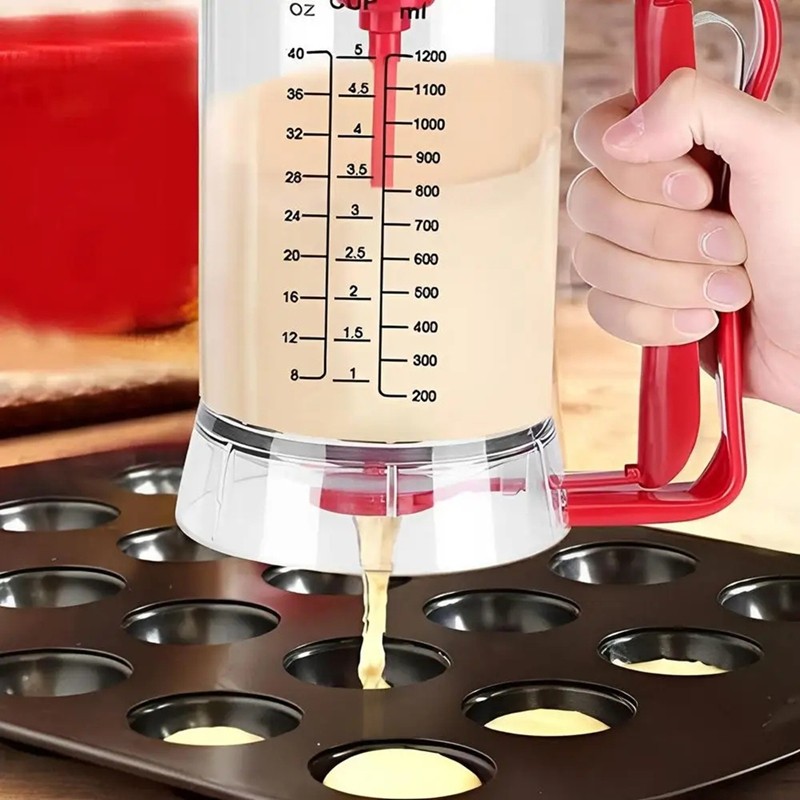 In stock-900ml Pancake Batter Dispenser Cupcake Handheld Dispenser Batter Funnel Measuring Cup Baking Tool Pancake Mix Dispenser