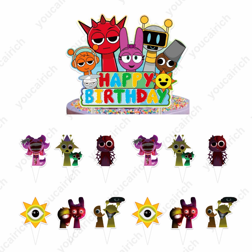Incredibox Sprunki Theme Kids Birthday Party Decorations Game Balloon Banner Cake Topper Balloons Set Supplies