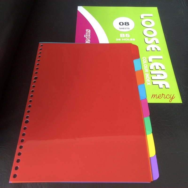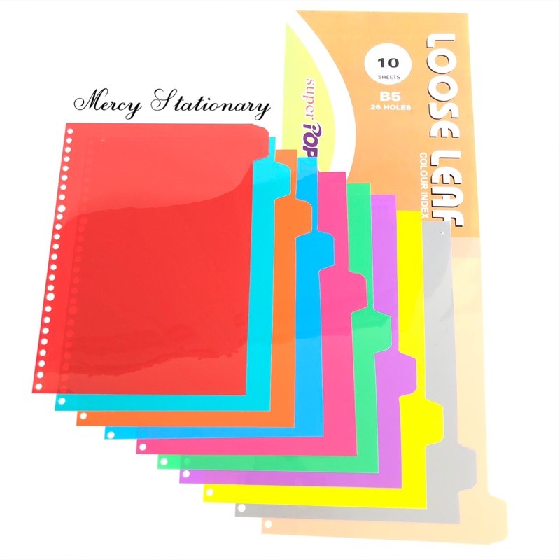 Index Plastic Divider A5, B5 & A4 Loose Leaf Divider - Colored Plastic Binder Divider