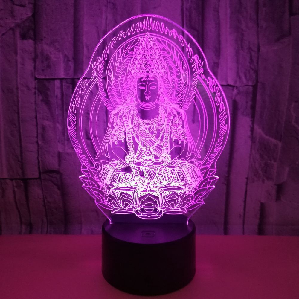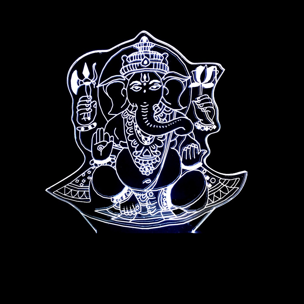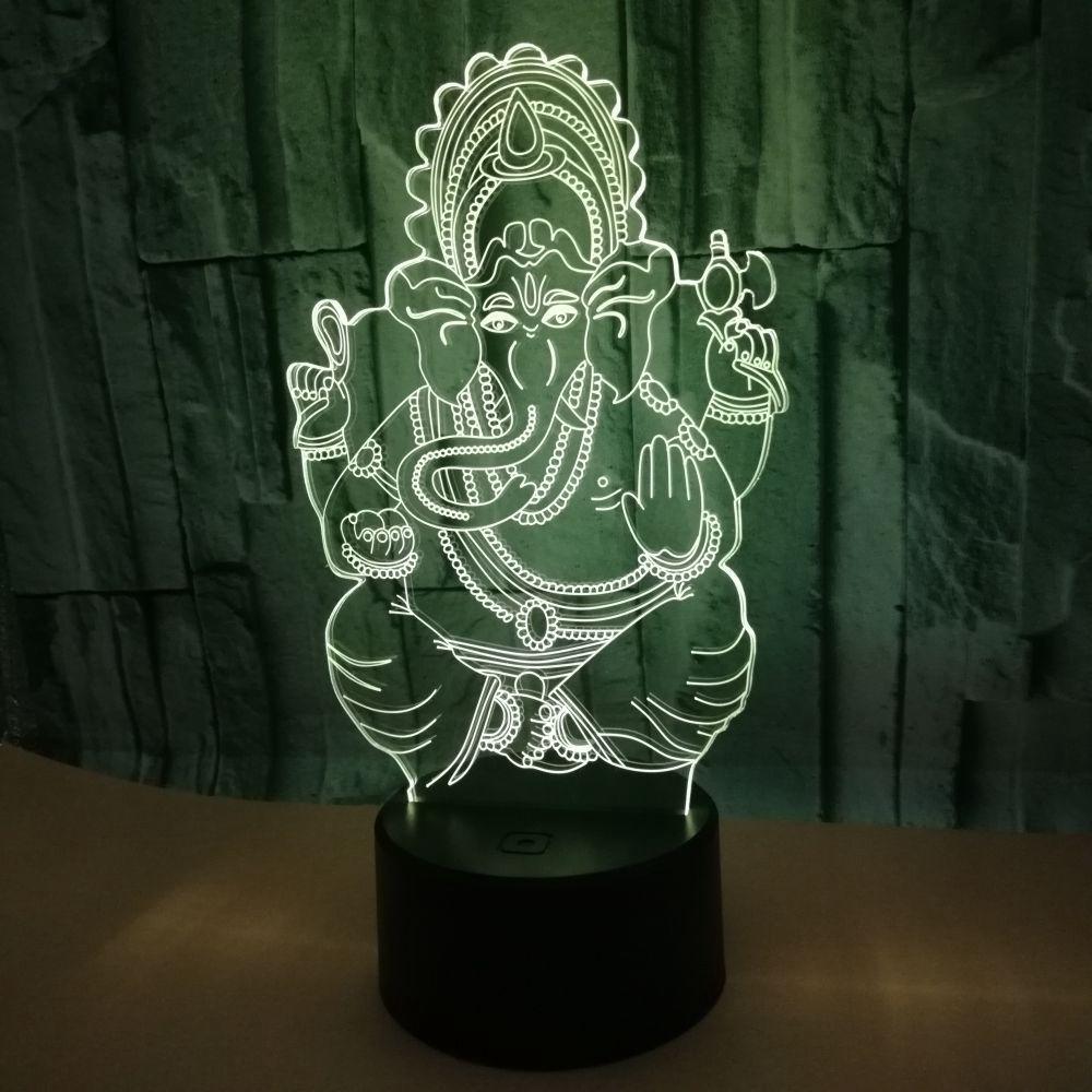 Indian Ganesha Lakshmi Buddh Statue 3D LED Lamp 7 Colors Changing USB Night Light Room Decoration+Q*W