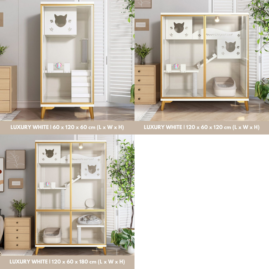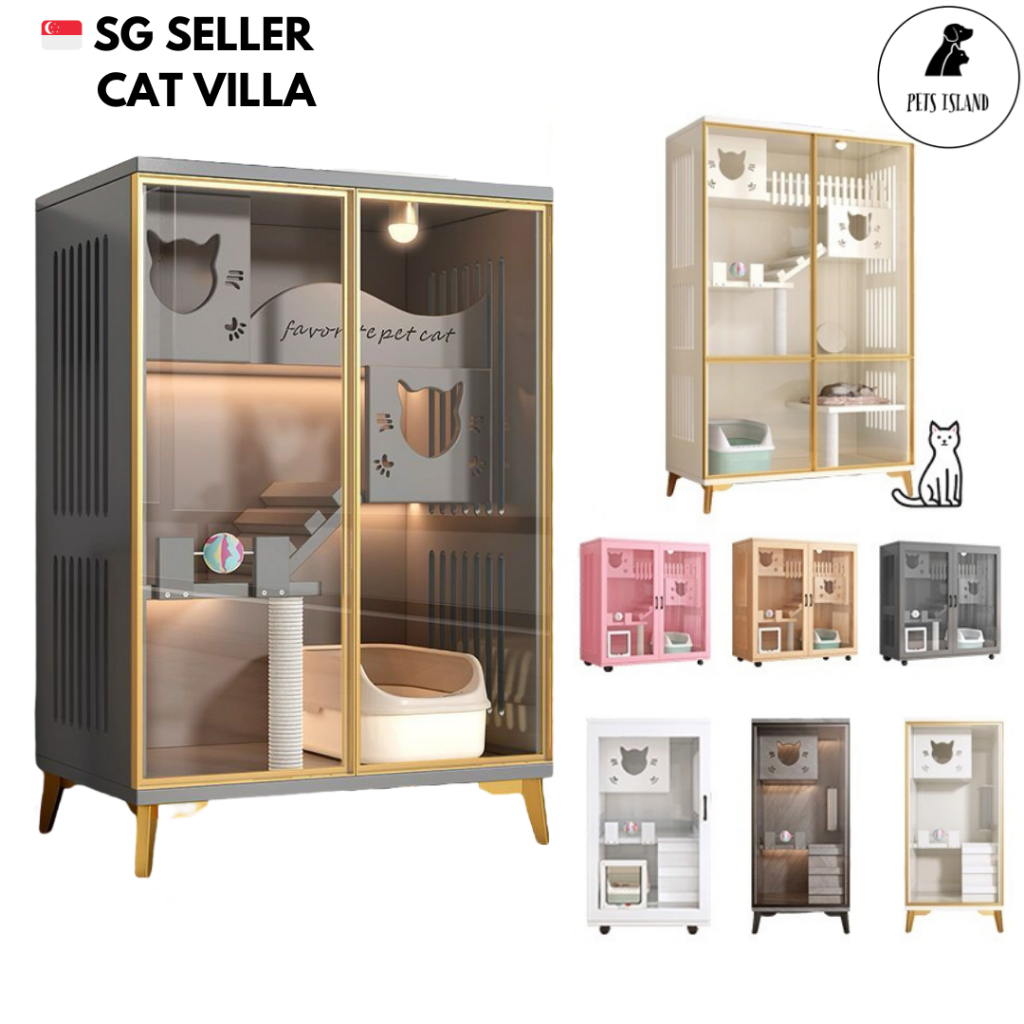 Indoor Cat House Double Deck Solid Wood Cat Condo Villa Cage for Pets