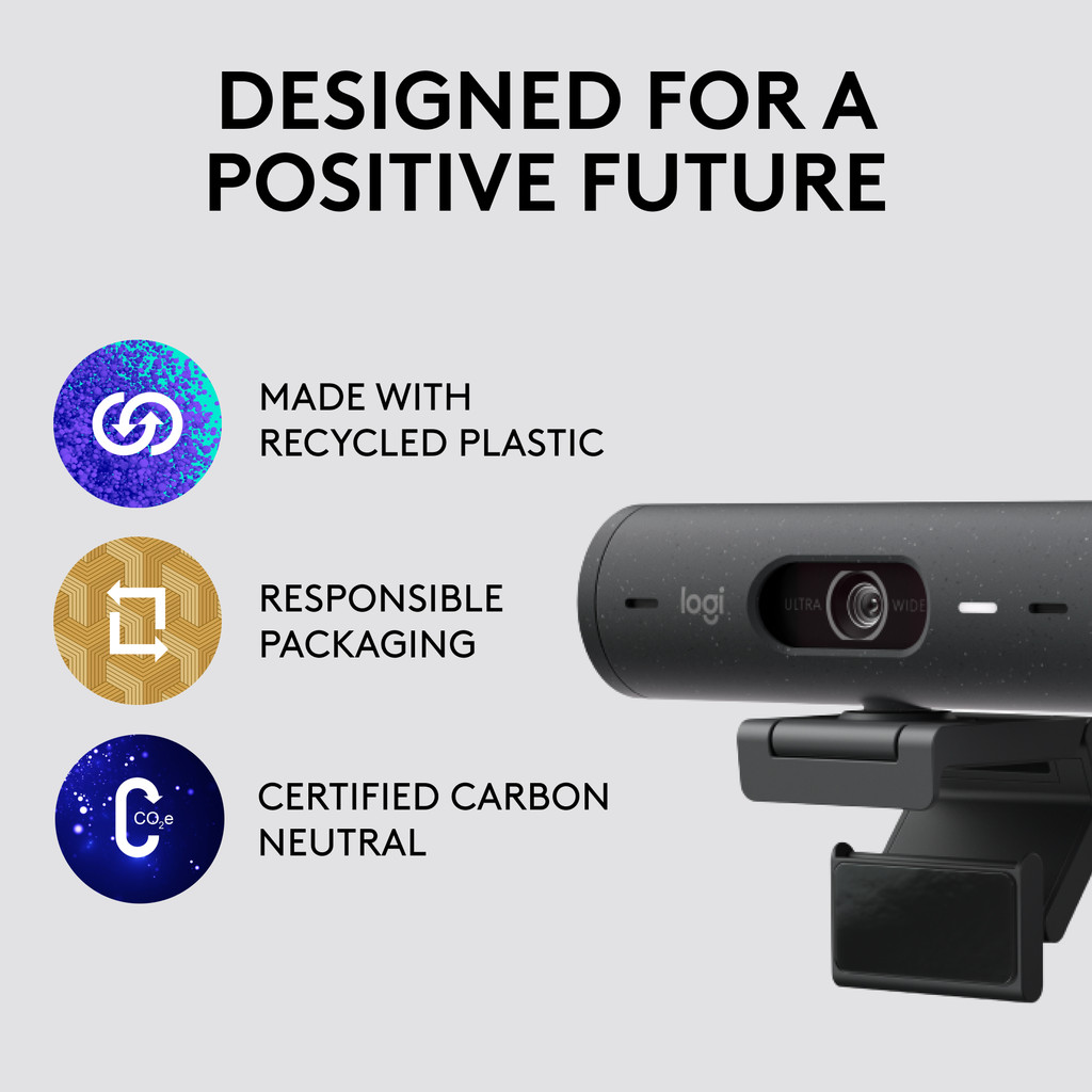 Logitech Brio 500 Full HD Webcam with Auto Light Correction, show Mode, Dual Noise Reduction Mics, Webcam Privacy Cover