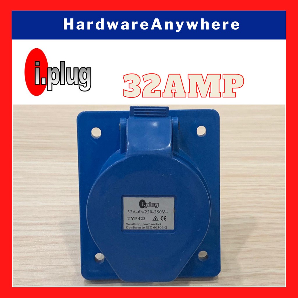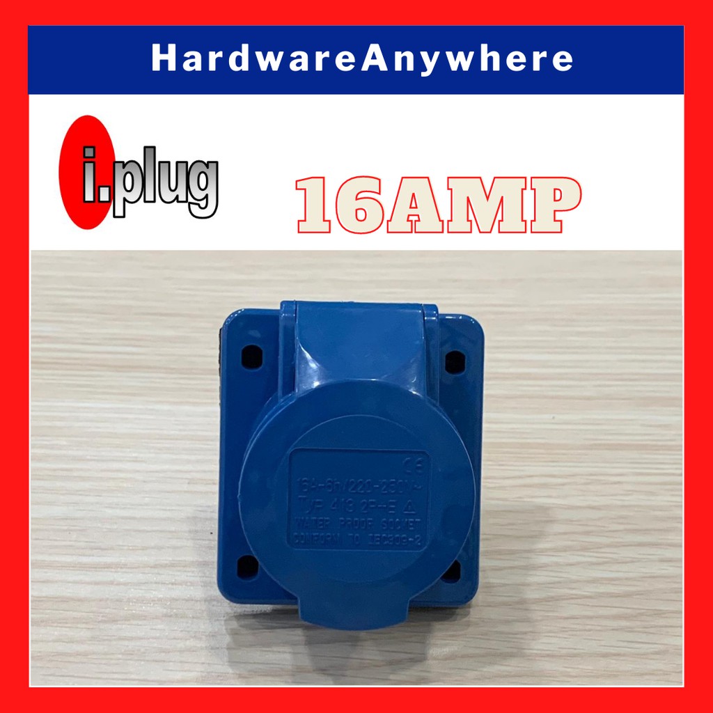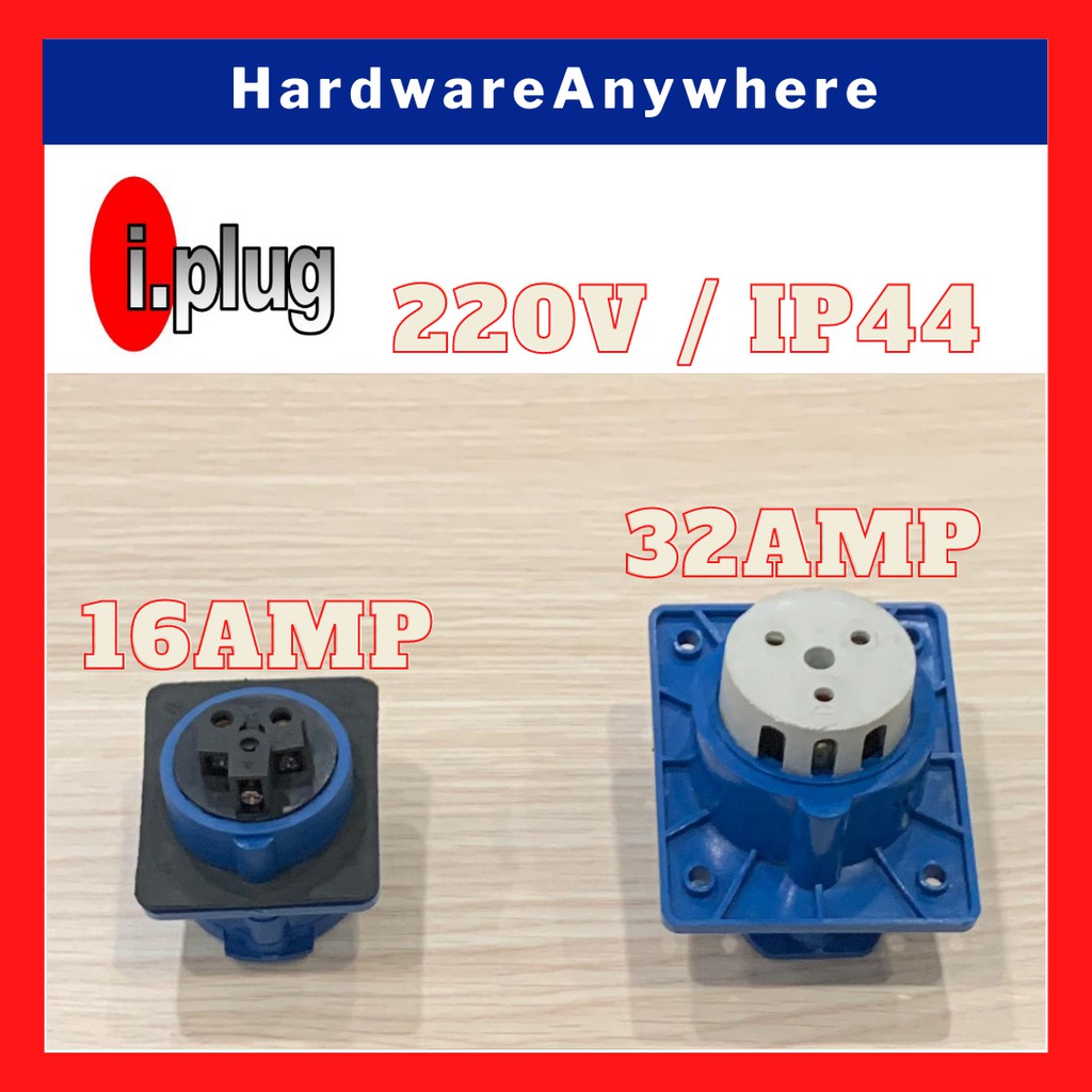Industrial Panel Mounted Socket Outlet - 220V Blue [16AMP / 32AMP] 2P + E