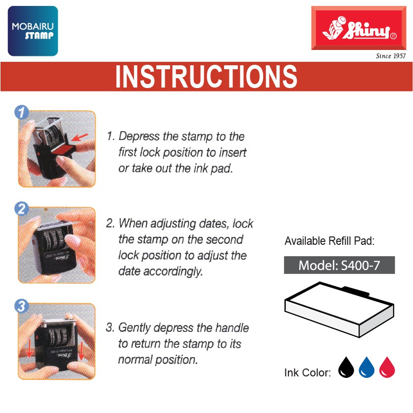 Ink Pad/Cartridges Refill for Self Inking Stamps - Shiny Dater Printer S-400 (Black, Blue & Red)