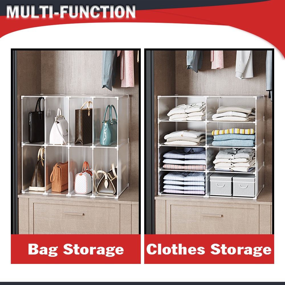 Innohut Multipurpose PP Plastic Bag Storage Shelves Stackable Handbag Clothes Organizer Rack