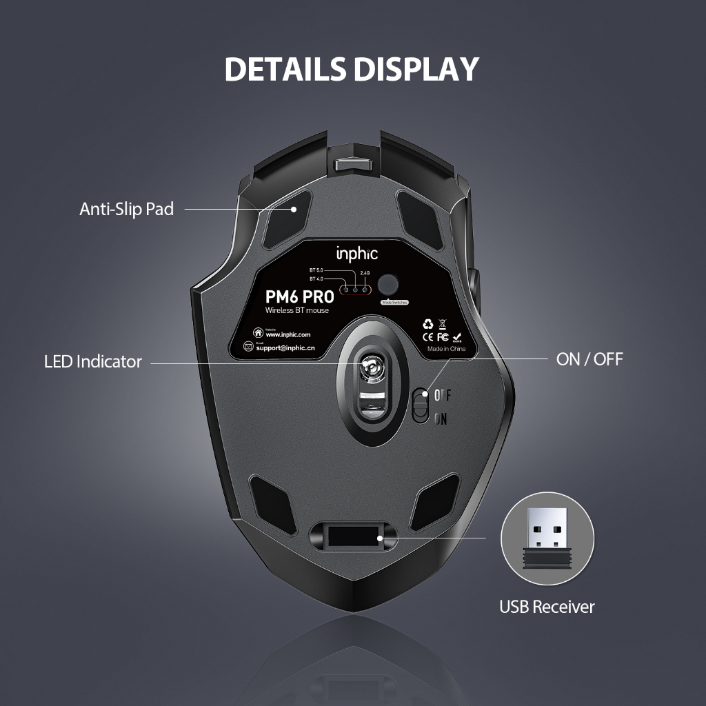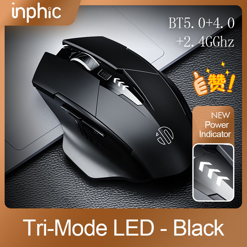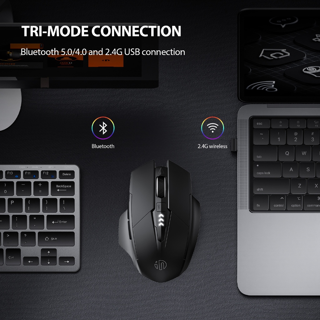 Inphic A1 Wireless Mouse Bluetooth+2.4G tri-mode Rechargeable Ergonomics Mouse Silent Optical Mice for PC / Mac /Laptop/iPad