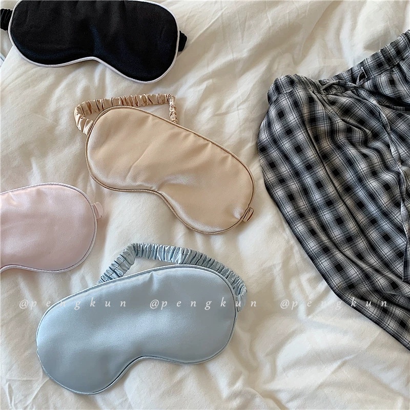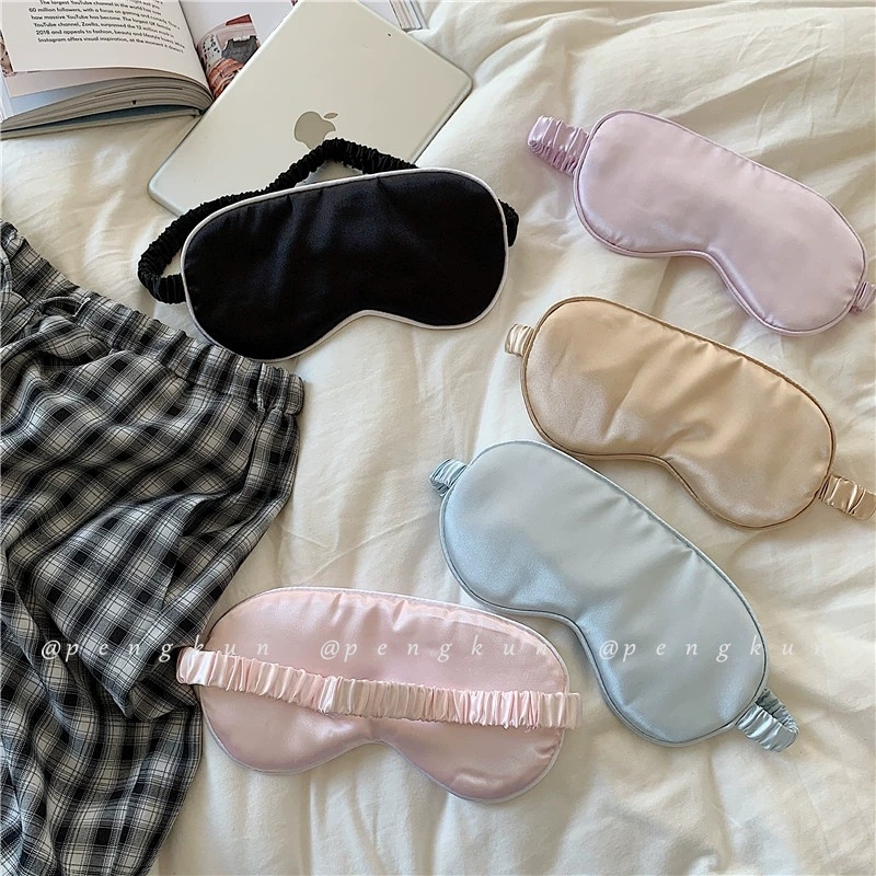Ins Solid Color Eye Mask Sleep Shading Eyes Sleeping Mask Eye Protection Double-Sided Simulation Silk Sleeping Mask Elastic Travel Lunch Break Mask