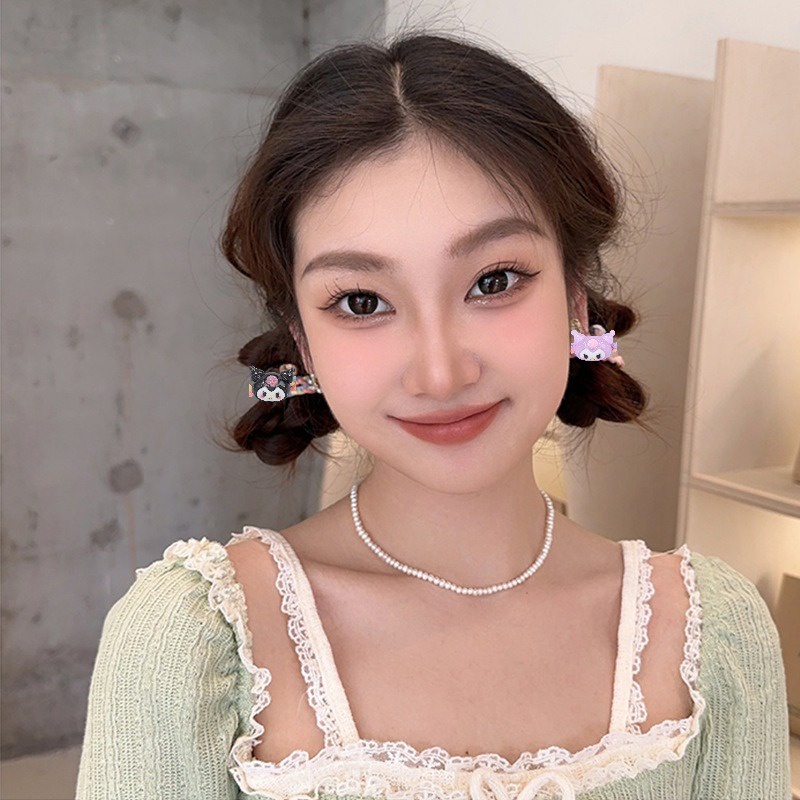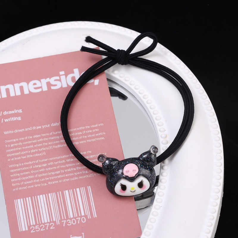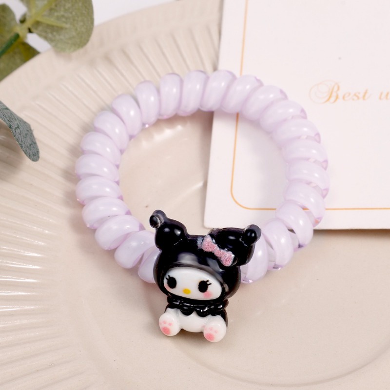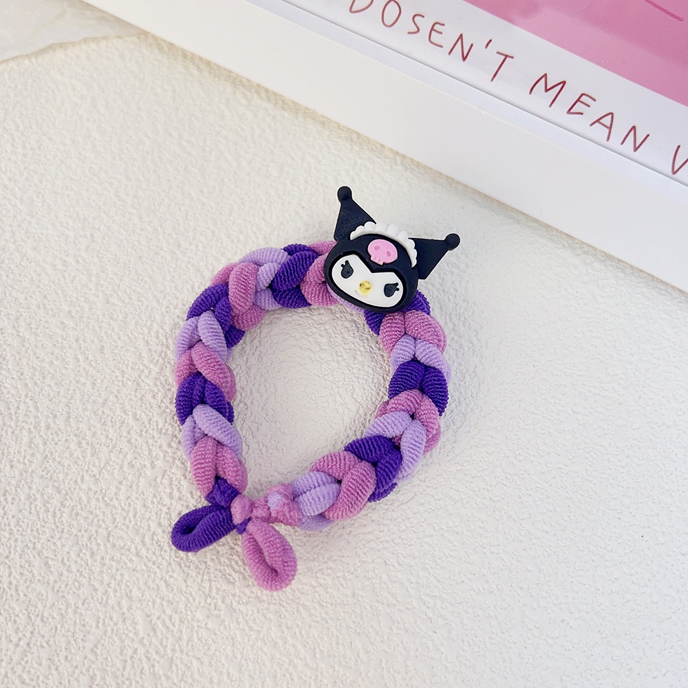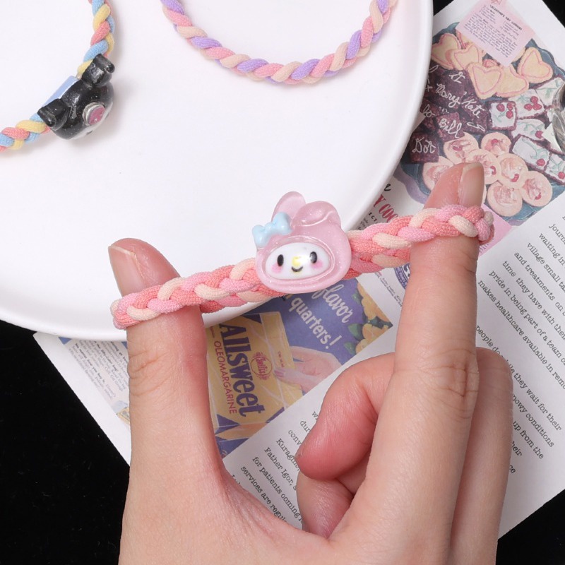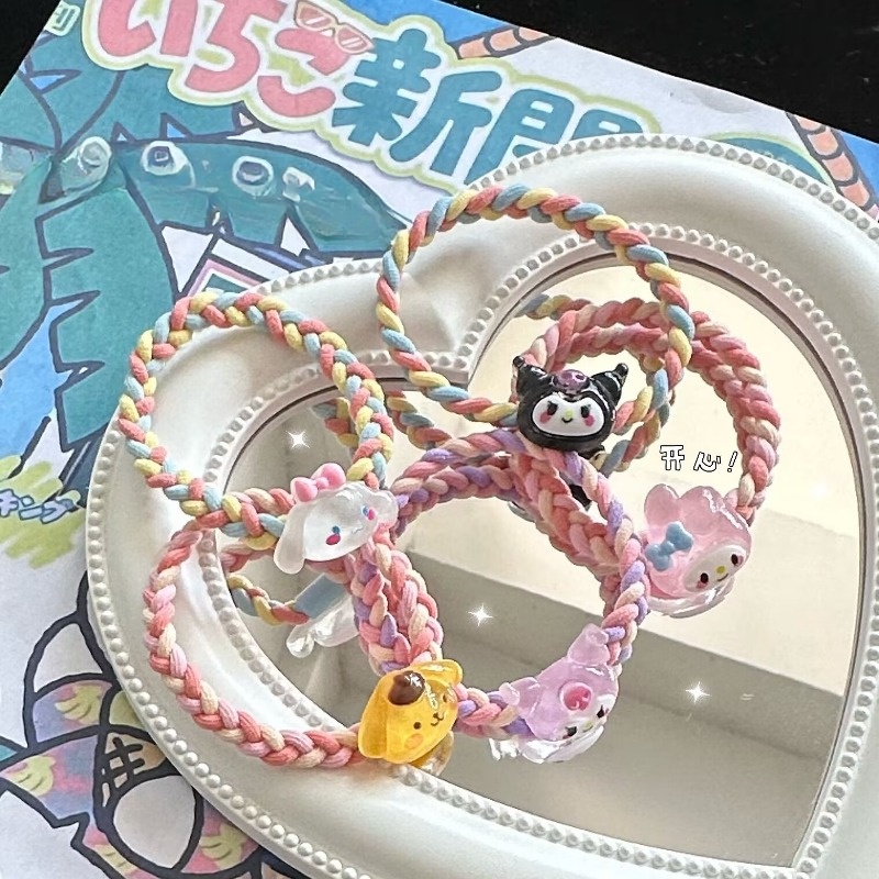 Ins Style Fashion Color Sanrio Ponytail Head Rope Hair Accessories for Children Girls Cute Cartoon High Elastic Braided Hair Ring Kuromi Cinnamoroll Kawaii Hair Circle Sweet