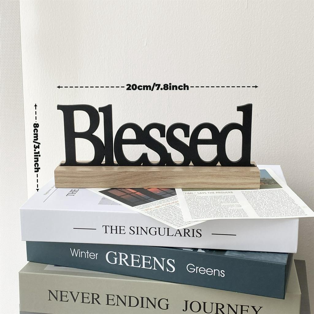 Motivational Wooden Sign – Blessed Inspirational Shelf Decor for Home and Office