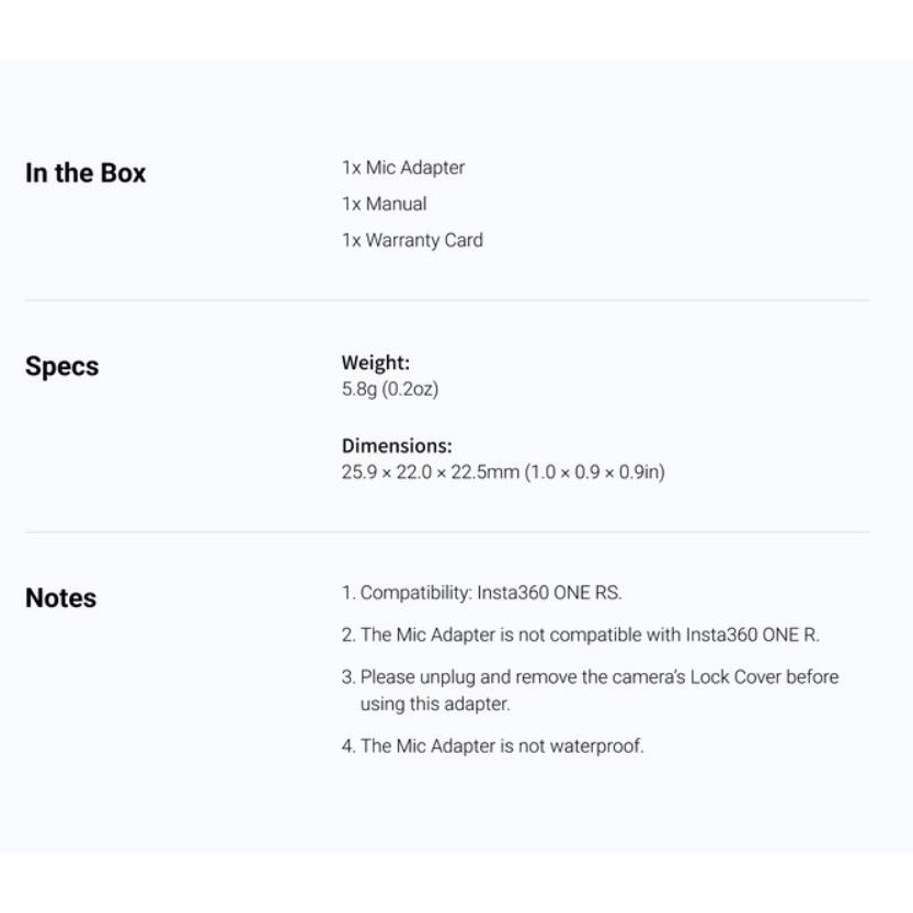 Insta360 ONE RS - Mic Adapter (Horizontal Version) - 3 Months Warranty