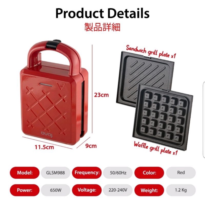 Iona (2 in 1) Sandwich and Waffle Maker (Changeable Paltes) GLSM988 | GLSM 988 (1 Year Warranty)