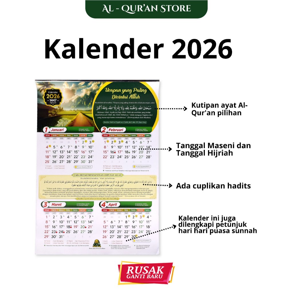 Islamic Muslim Calendar 2026 Muslim Daily Calendar 2026 Art Paper (29.5 x 45 cm) Darul Haq Calendar