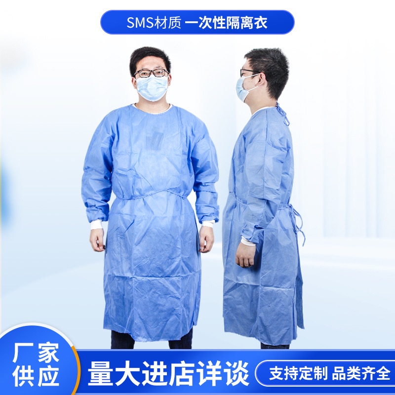 Isolation Gown, PPE Gown, Surgical Gown, Medical Gown with knitted cuffs Blue (1pc)