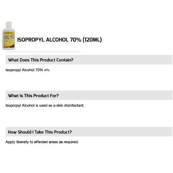 Buy 1 Get 2 Free, while stocks lasts! Isopropyl Alcohol 70% (120ml) (Expiry is 09/2025)