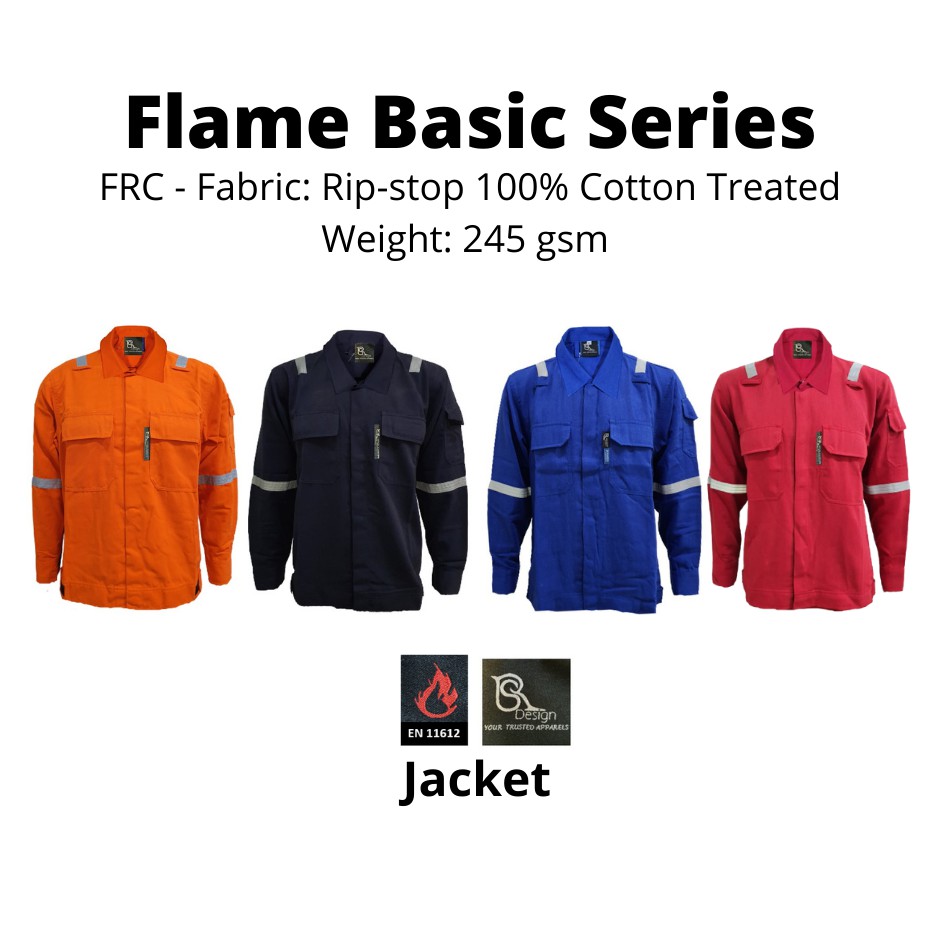 JACKET Flame Retardant Cotton (FRC) 100% Cotton Treated RS DESIGN - ROYAL BLUE / NAVY BLUE / ORANGE / RED (RS-FRC-J101)