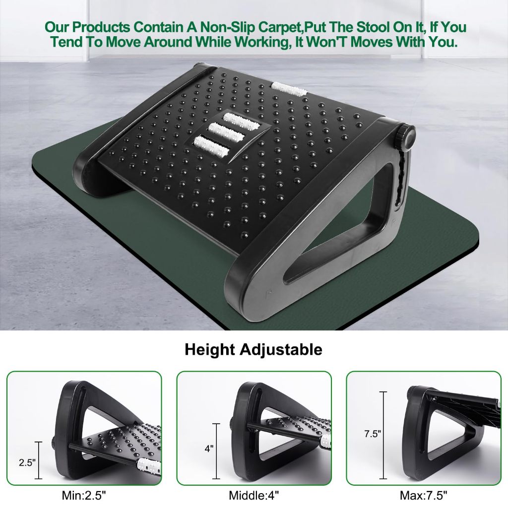 JAERSENT S03 Ergonomic Footrest 6 levels Adjustable Angle and Height Office Foot Rest Stool-BLACK