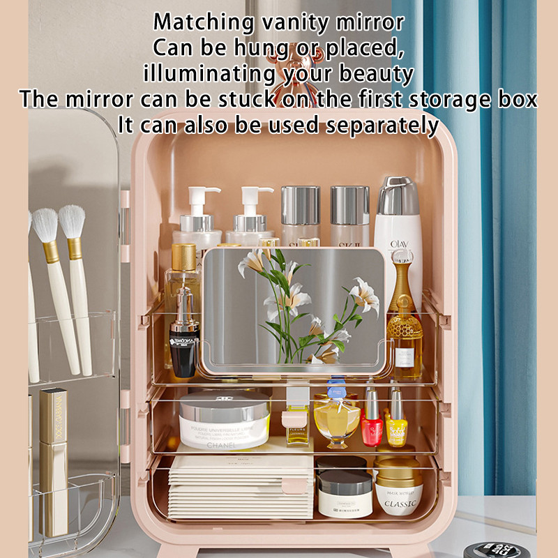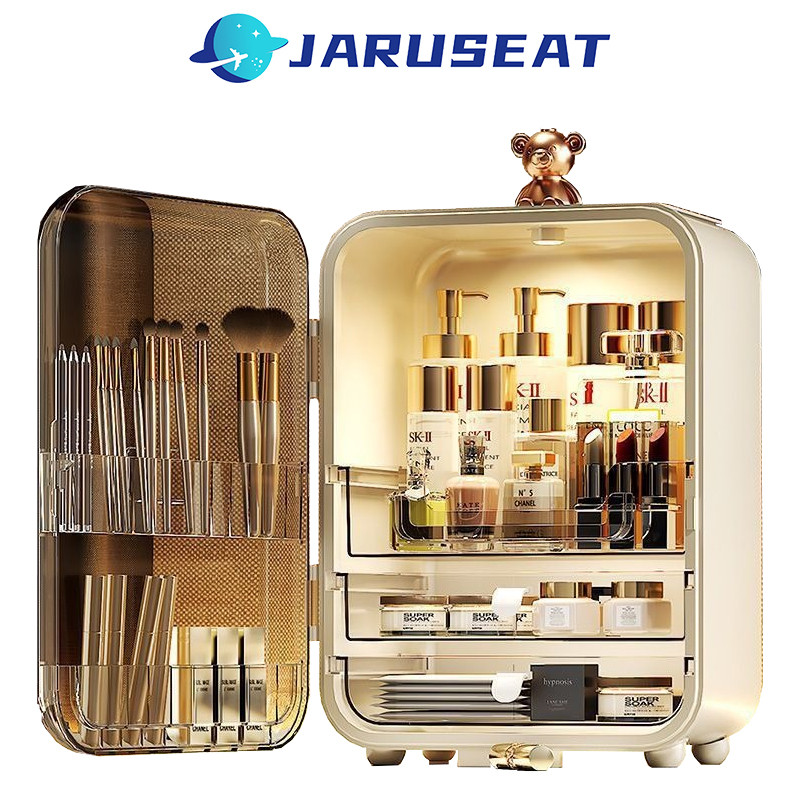 JARUSEAT Makeup Storage Cabinet Cosmetic Storage Box Dustproof / Large capacity / Includes makeup mirror / USB charging port / With light