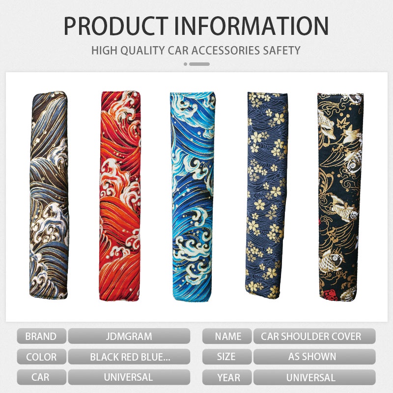 JDMGRAM JDM Car Seat Belt Cover 2pcs Japanese Style Universal Auto Shoulder Pad Safety Protector Cushion Automobile Interior Accessories