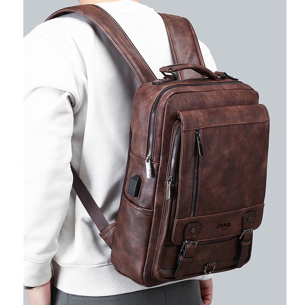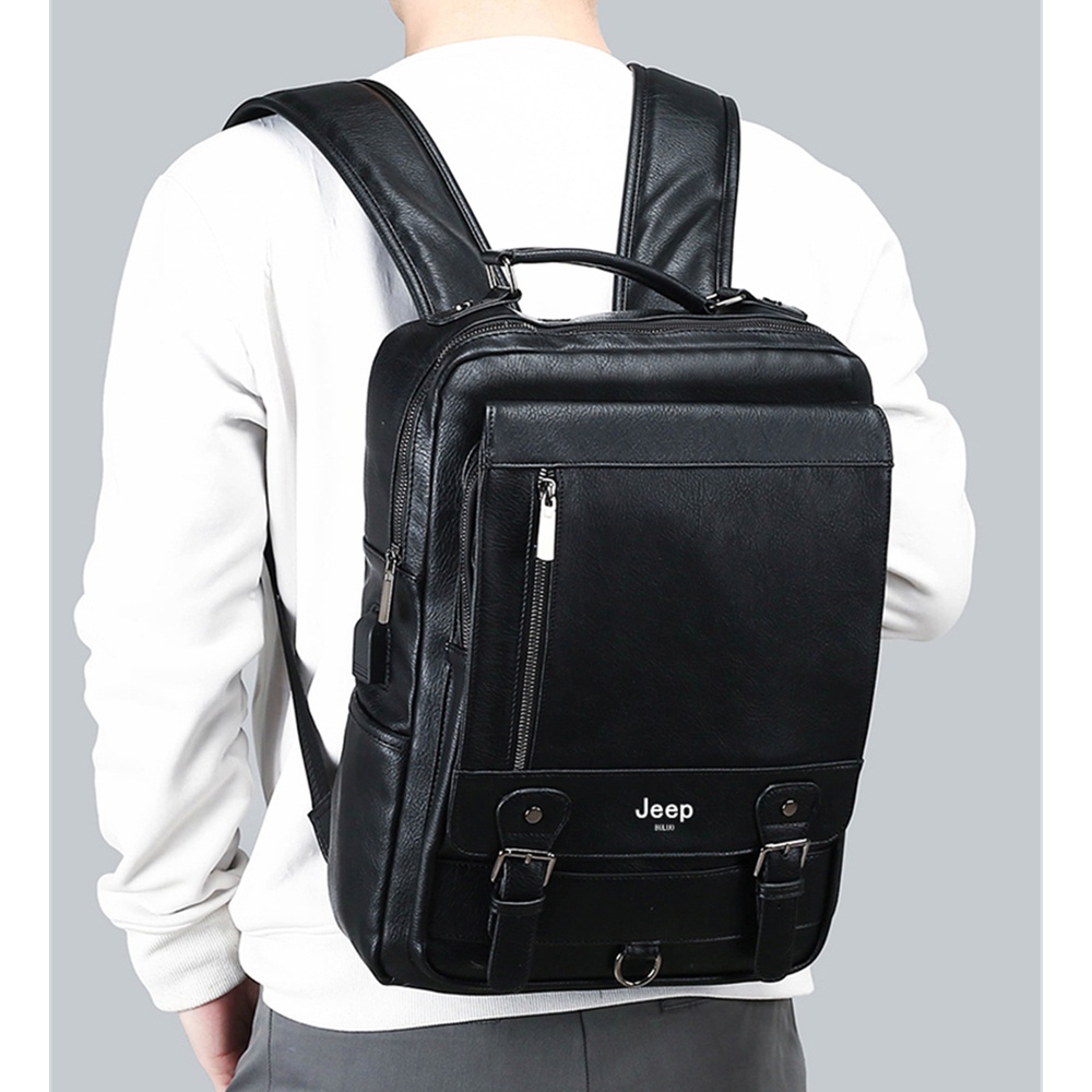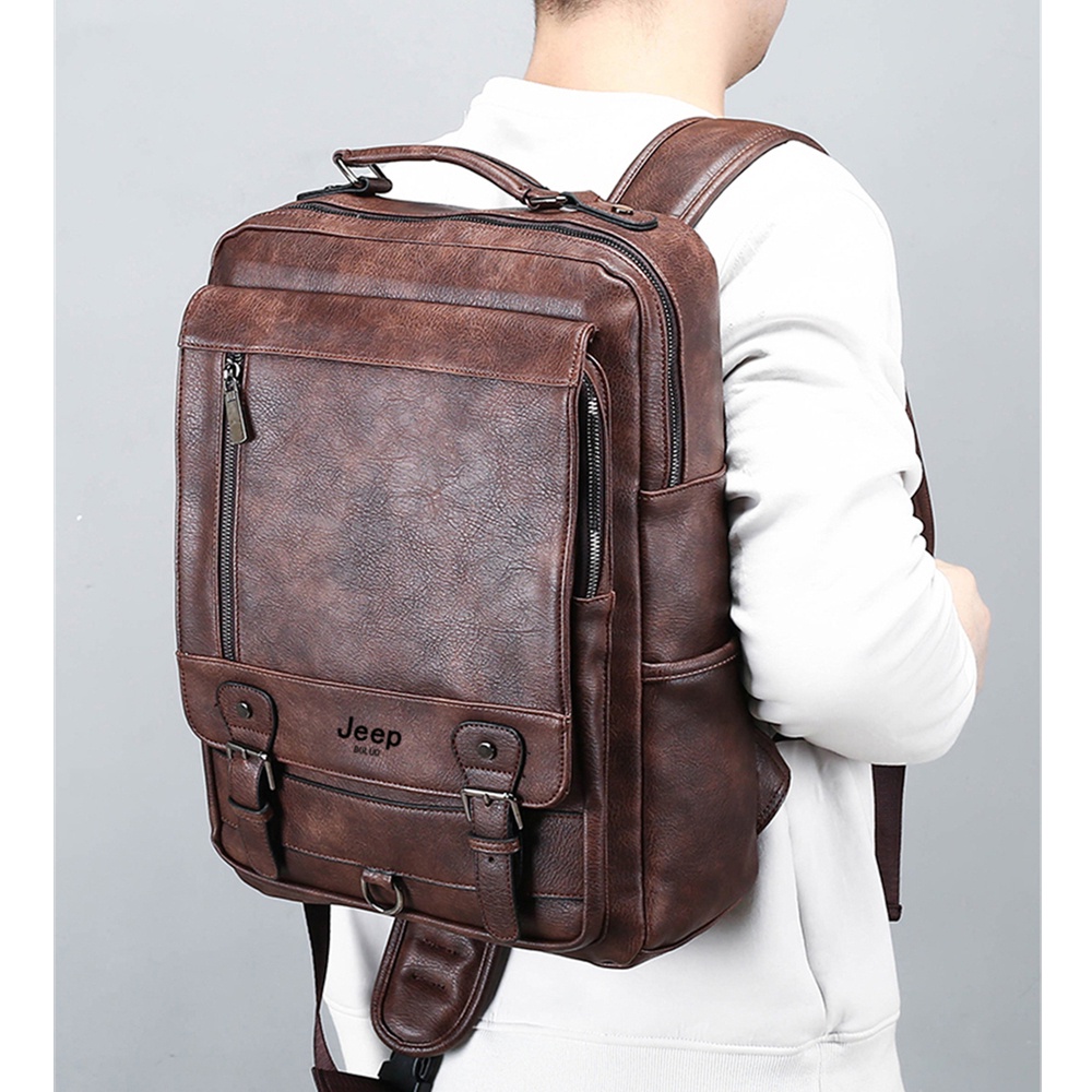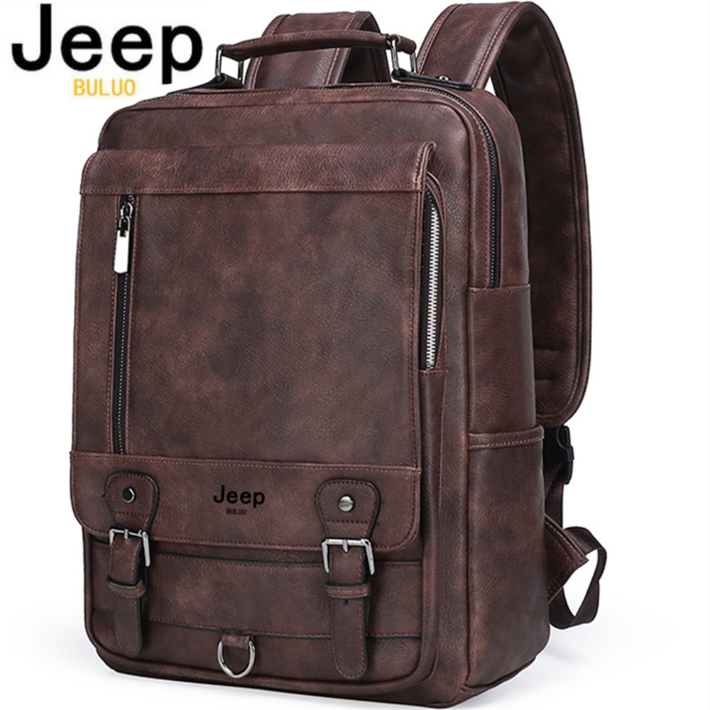 JEEP BULUO Backpack Fashion Leather Men Business Male 15.6" Laptop Bag Daypacks Large Capacity Travel College School Bag-2201