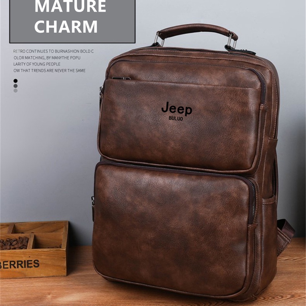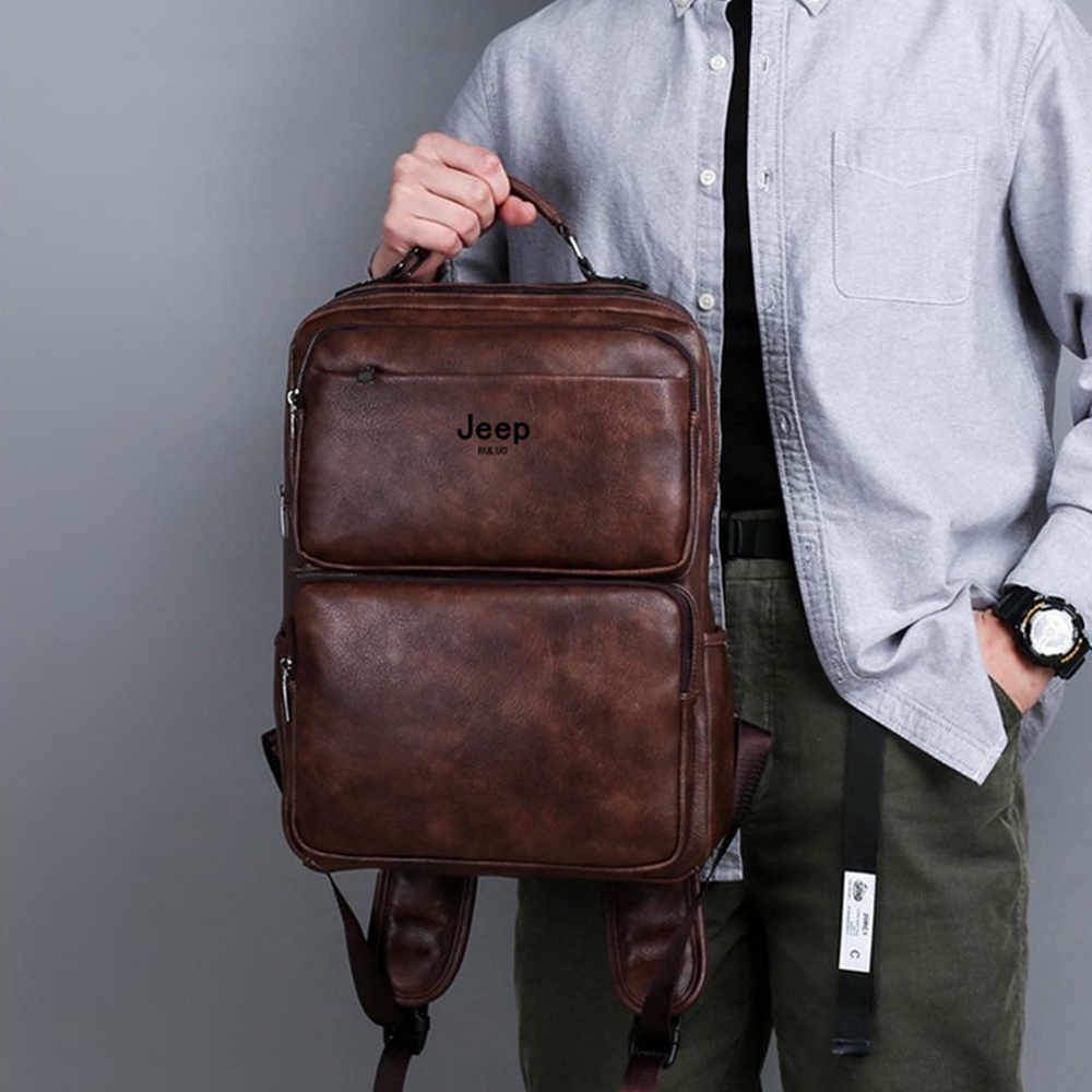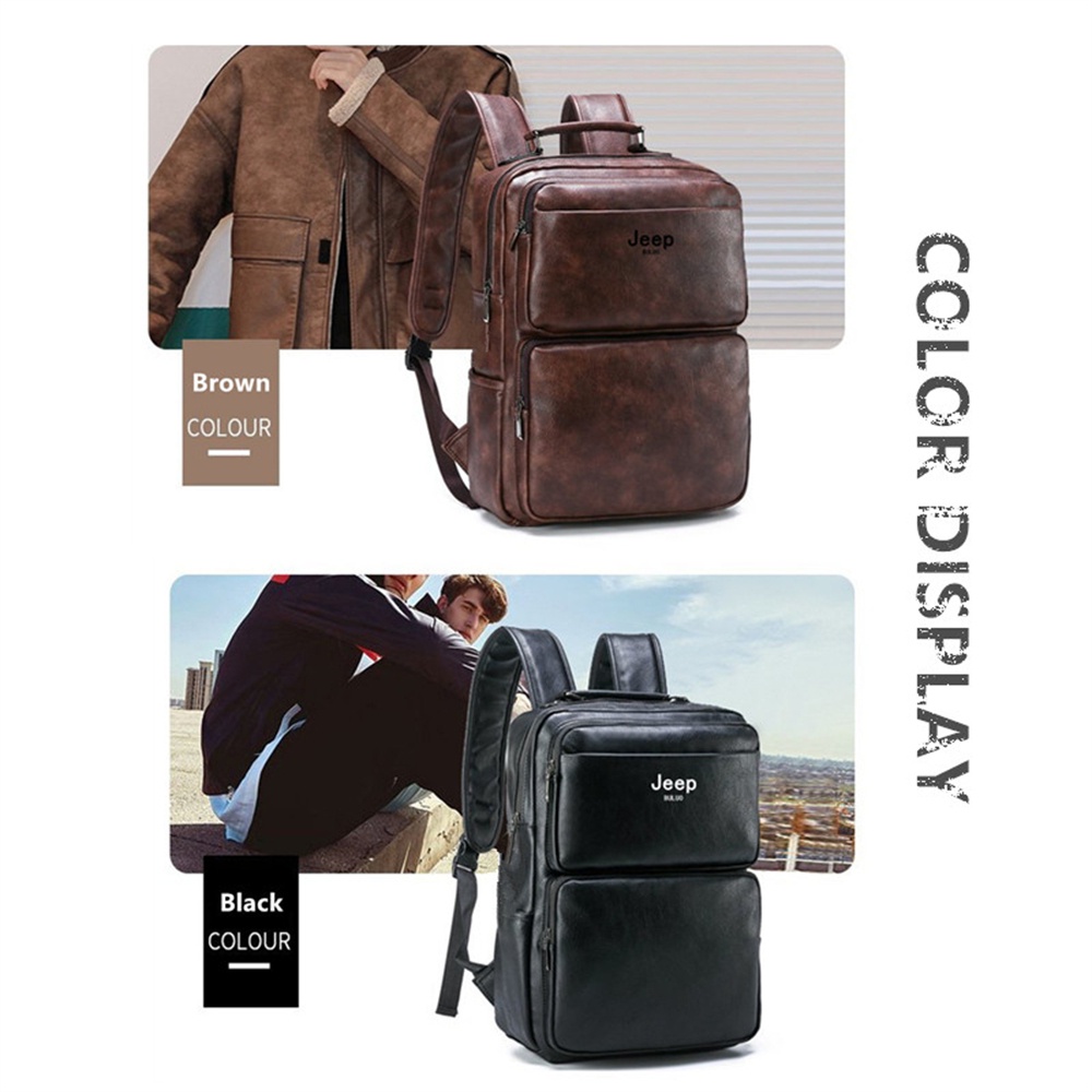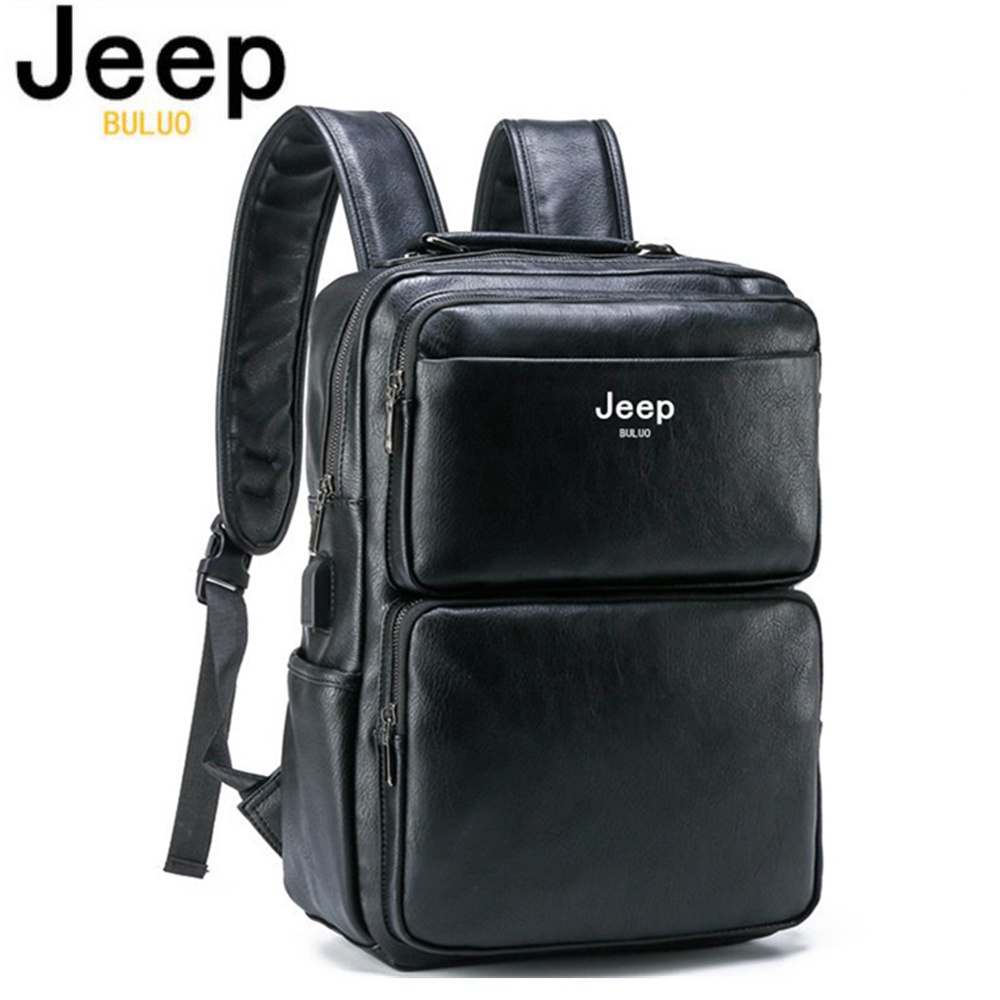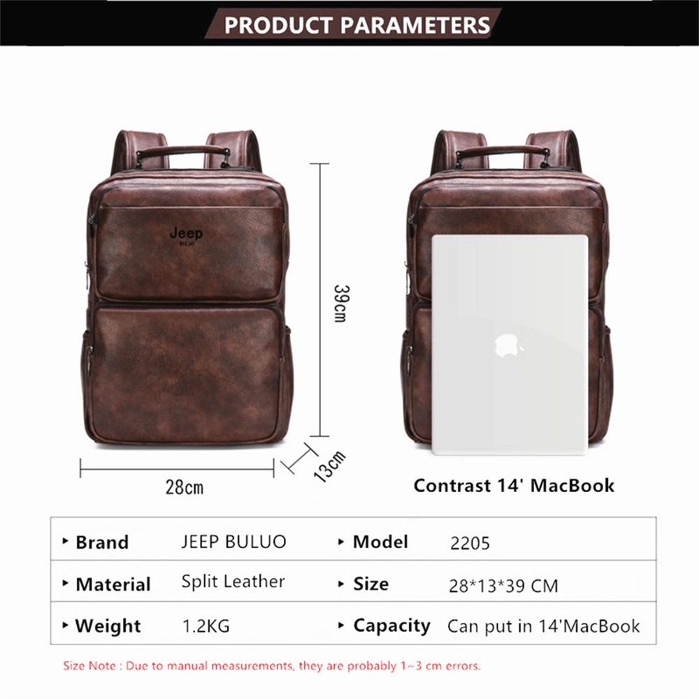 JEEP BULUO New Casual Daypacks 14 inches Laptop Large Capacity Backpack Outdoor Travel Men's Bag Usb Split Leather Bags For Man-2205