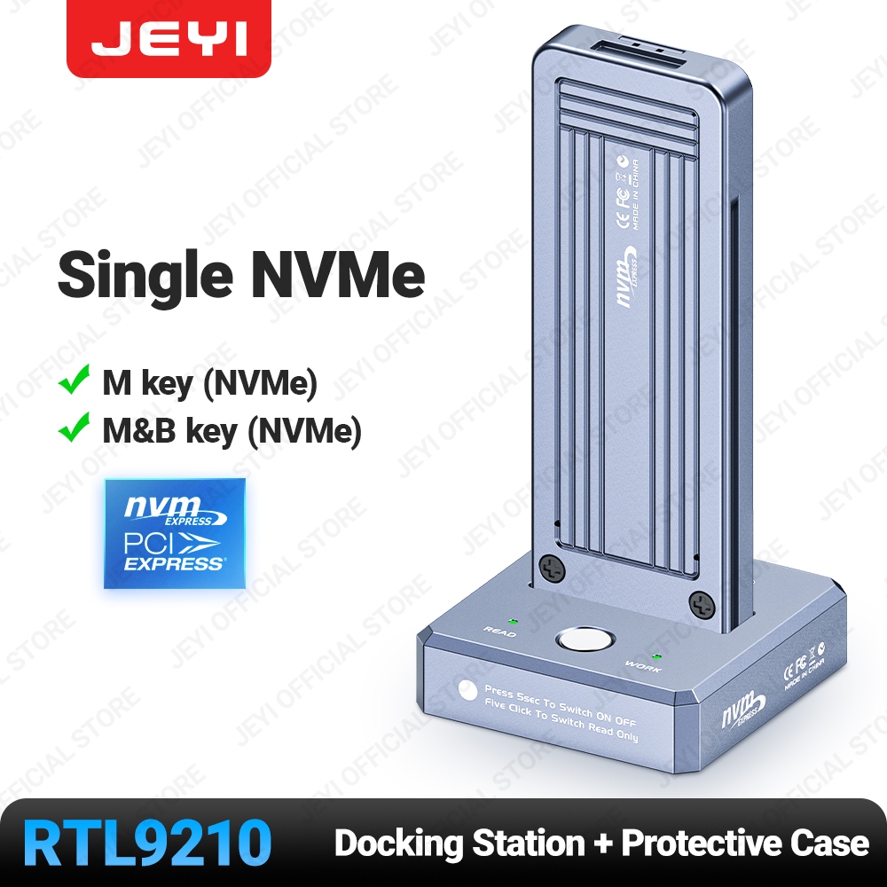 JEYI M.2 SSD Reader, NVMe & SATA to USB-C PCIe SSD Docking Station USB 3.2 10Gbps Solid Disk Adapter With Write Protection
