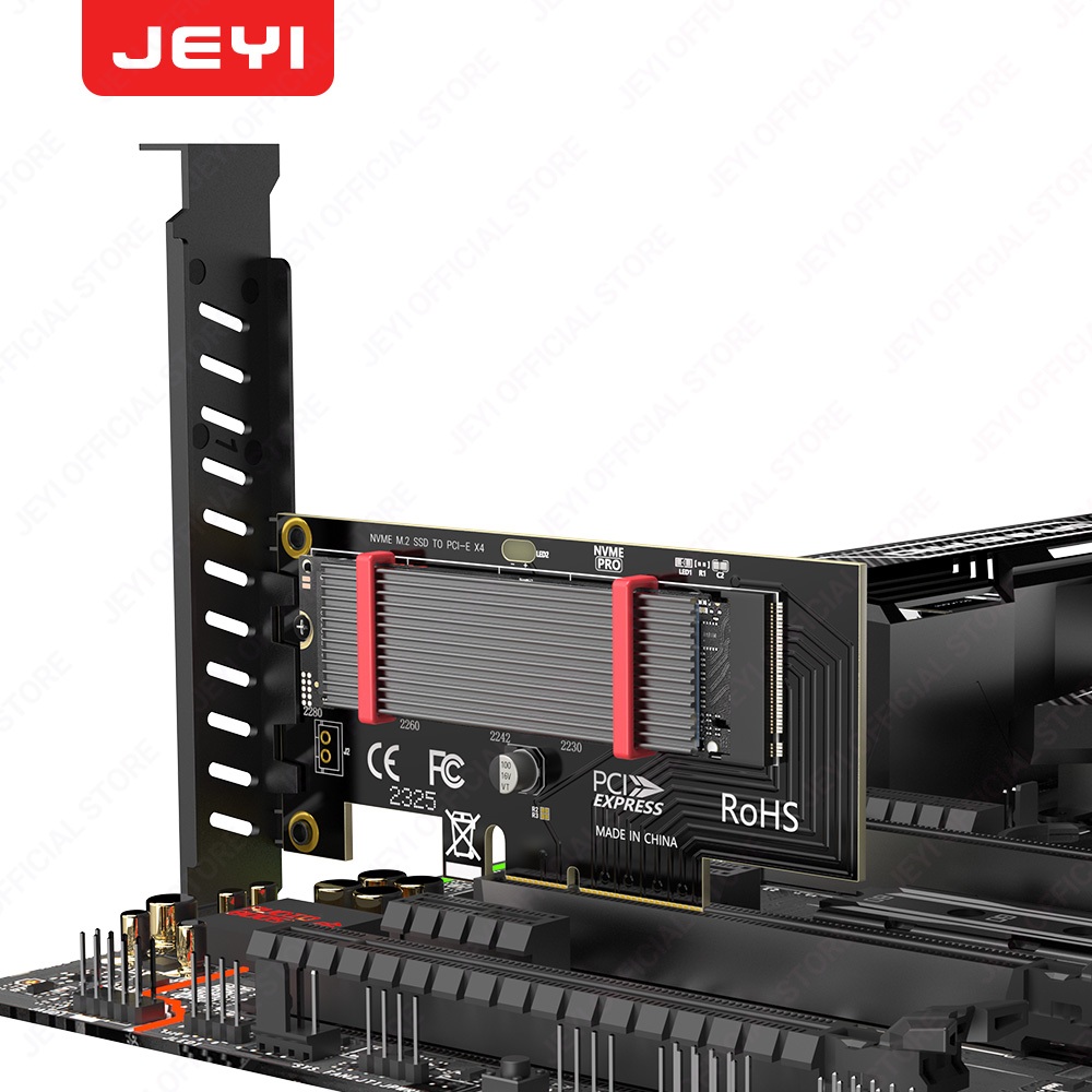 JEYI PCIe to NVMe Adapter With Aluminum SSD Heatsink Cooler, 64Gbps M.2 ssd Gen4 PCIe 4.0 X4 X8 X16 Expansion Card for Desktop