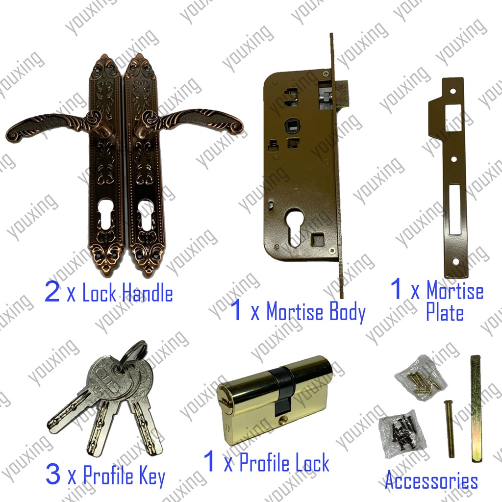 JF 9011 AC GRILLE DOOR LOCK MORTISE LOCK ENTRANCE DOOR IRON DOOR GATE LOCK METAL DOOR HANDLE DOOR LOCK KUNCI PINTU