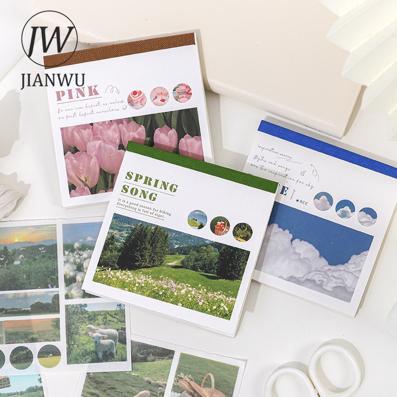 JIANWU 40Sheets INS Aesthetic Landscape Sticker Book DIY Journal Decoration Art Scrapbooking Material Kawaii Stationery Stickers