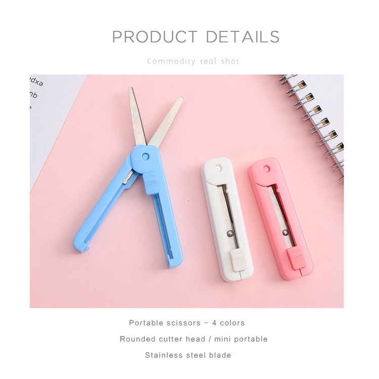 JIANWU Creative Portable Telescopic Scissors Pure Color Simplicity Paper-cutting Folding Safety Scissors Mini Stationery Scissors