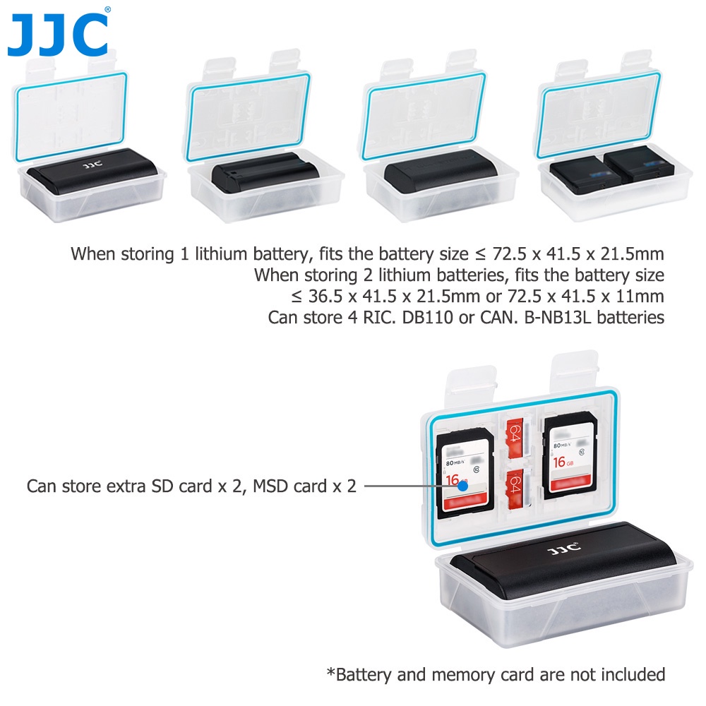 JJC 2-in-1 Battery Case with Extra Memory Cards Slots for SD SDHC SDXC 2 MSD Micro SD TF Cards, for Olympus BLS-5 BLN-1, Fujifilm NP-W126 NP-W126S Sony NP-FW50 Batteries