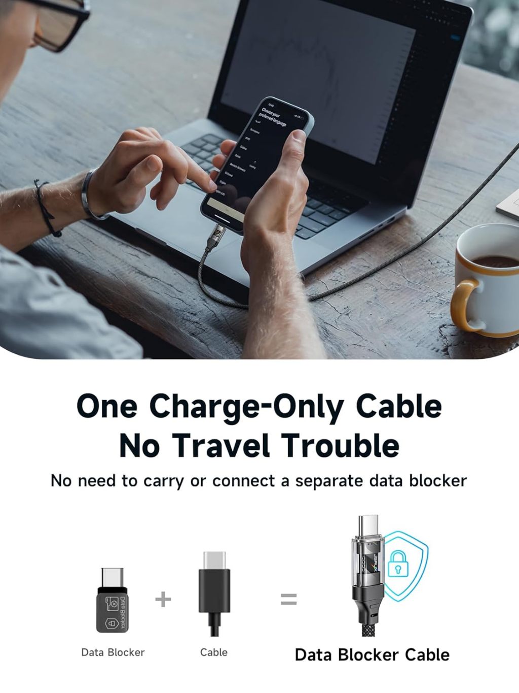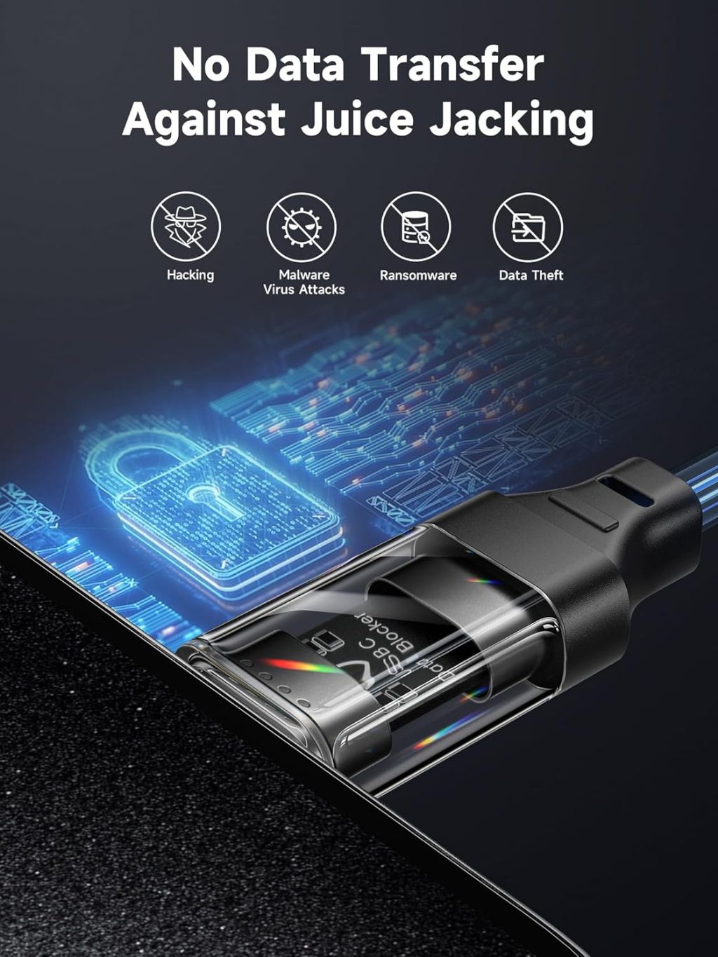 JSAUX Data Blocker USB-C Cable Charge-Only USB-A to USB-C Charging Cables Protect from Juice Jacking