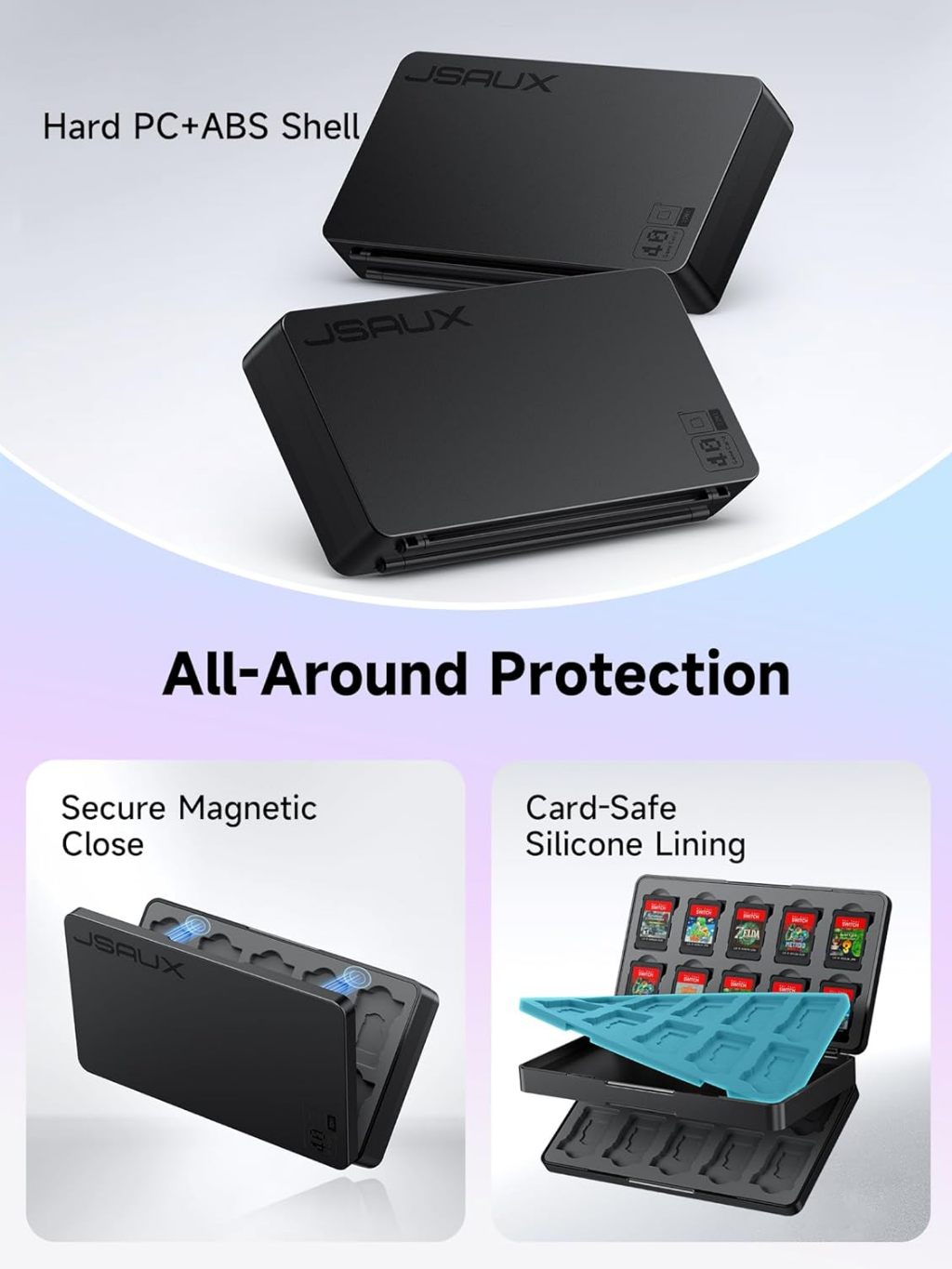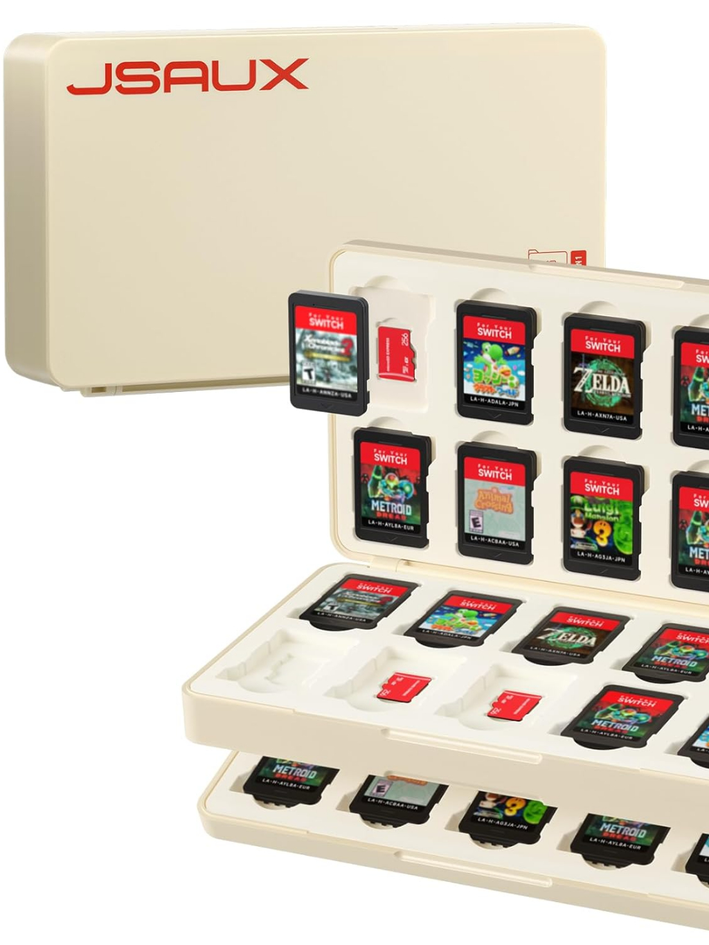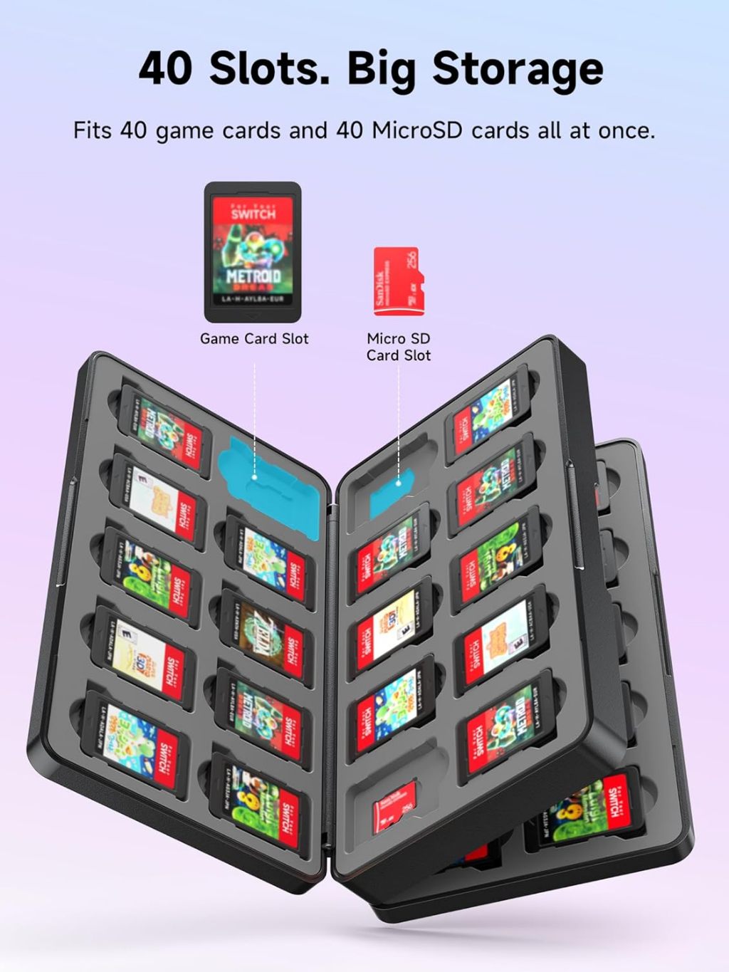 JSAUX Nintendo Switch 2 Game Card Case 40 Slot Hard Shell Storage Holder MicroSD Cards Organizer Box