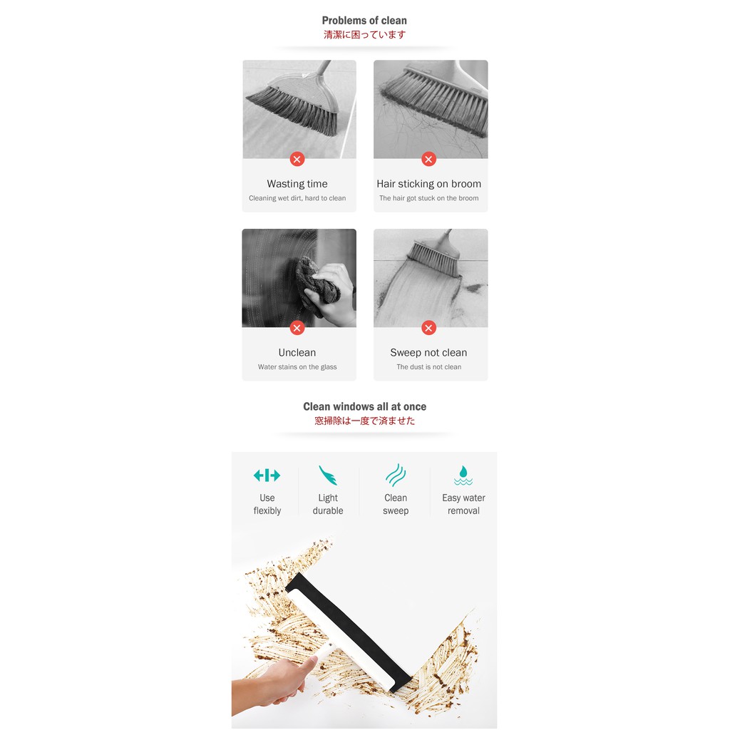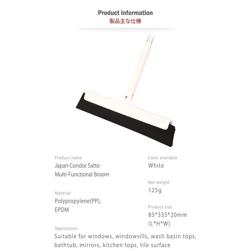 Japan Condor Satto Broom Multi Purpose Window Glass Surface Cleaner Cleaning Wiper (Stick Sold Separately)