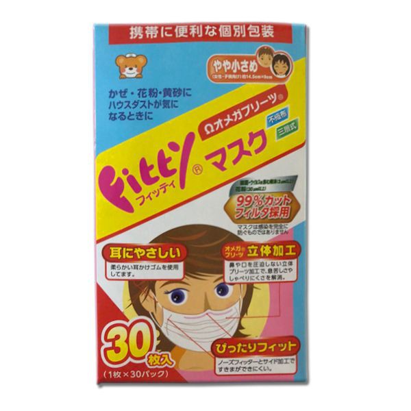 Japan FITTY Kids 3-Ply Surgical White Face Masks Size M14.5cm x 9cm (30pcs Individual Wrapped) BFE 99%