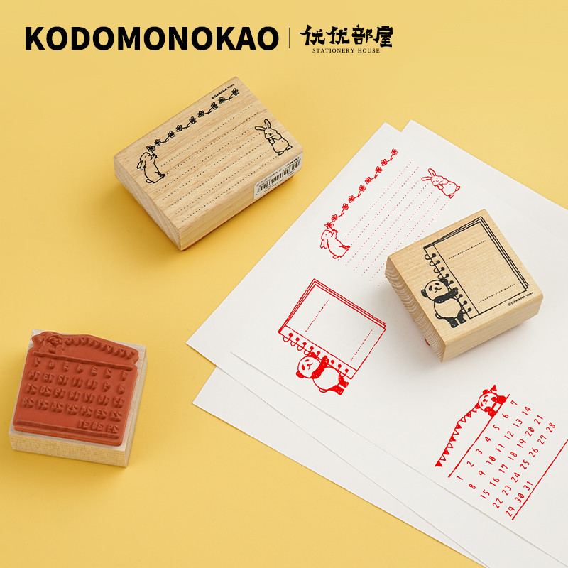 Japan KODOMO NO KAO Animal Theme Handbook Seal Wooden Seal Panda Calendar Dot Matrix Horizontal Line