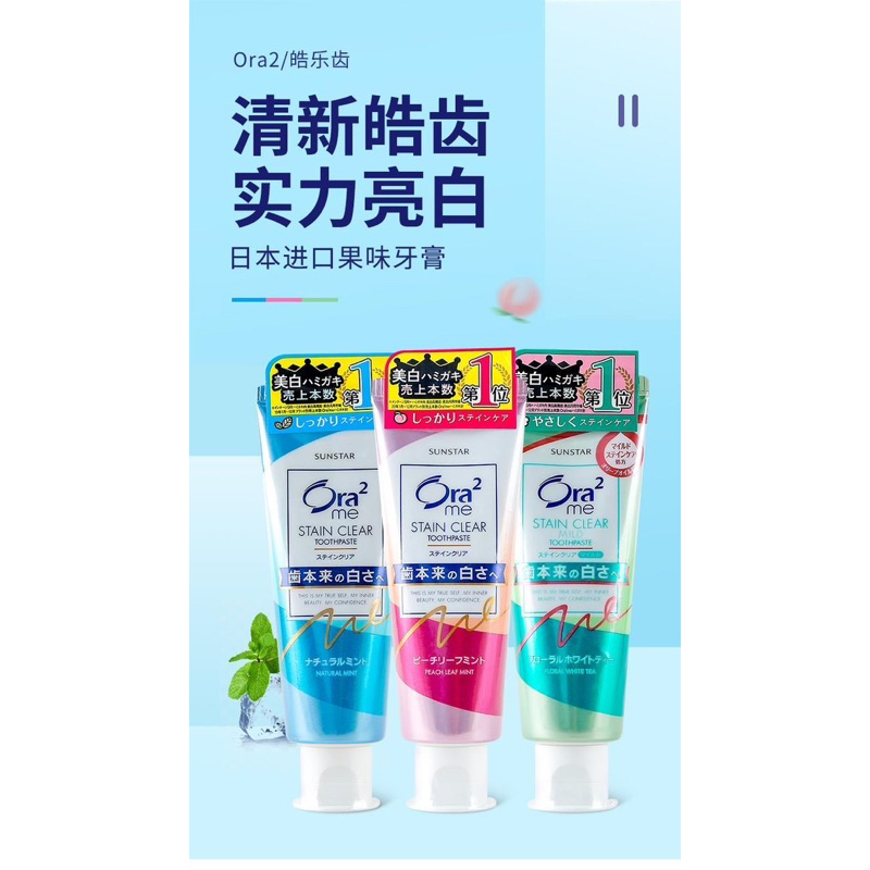 Japan Sunstar Ora2 Stain Clear Toothpaste (Floral White Tea / Natural Mint / Peach Leaf Mint) 130g
