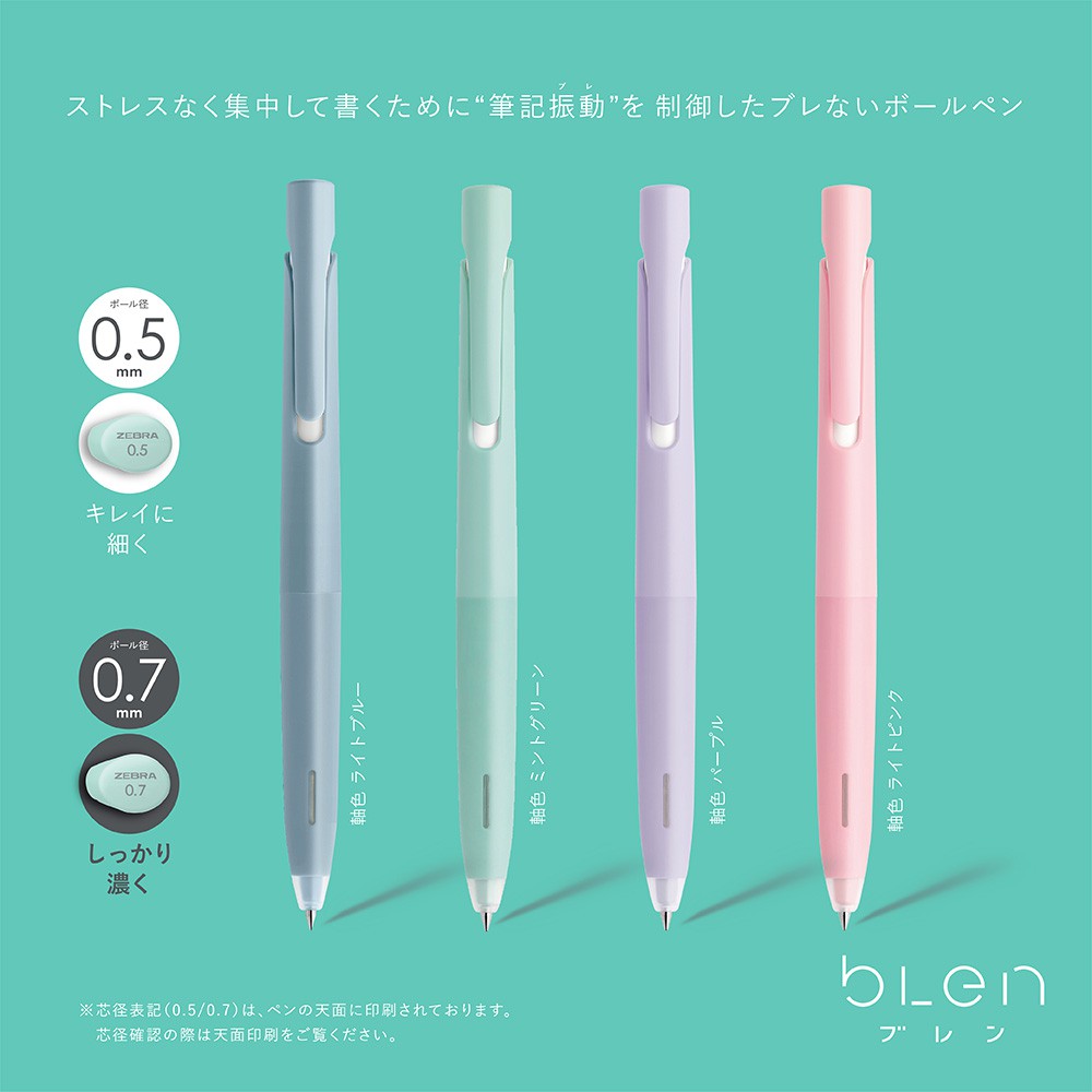Japan Zebra Blen Press Ballpoint Pen 0.5mm / 0.7 mm | Black Ink | Stationery