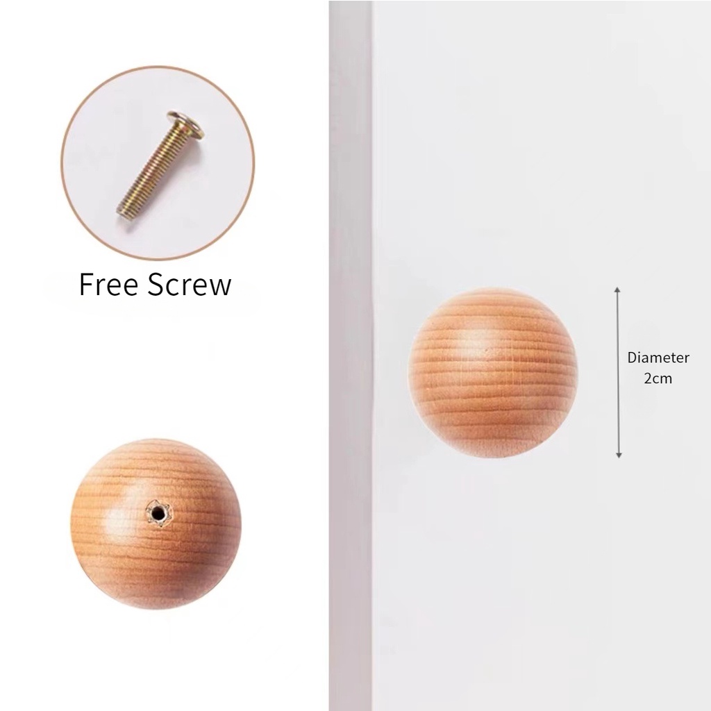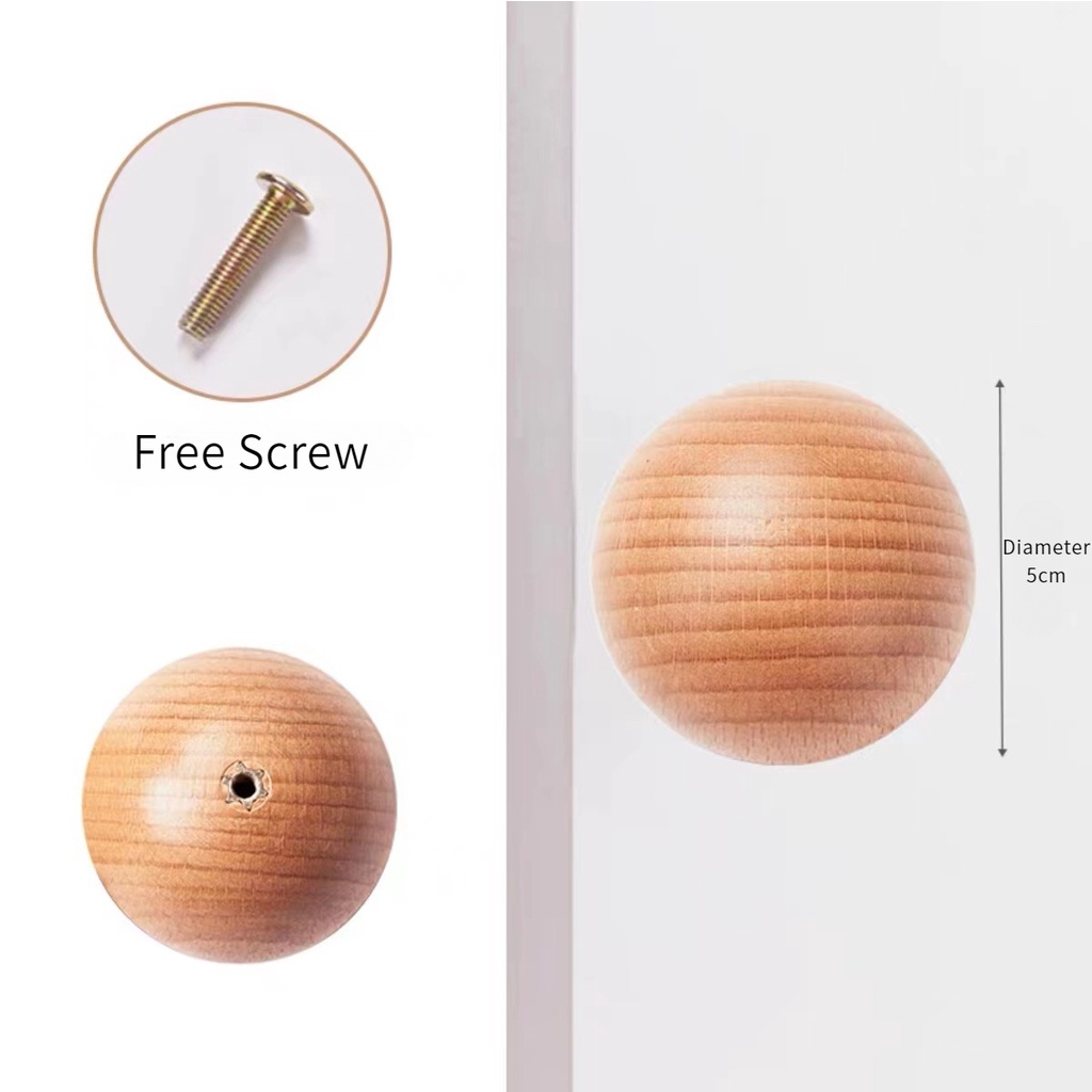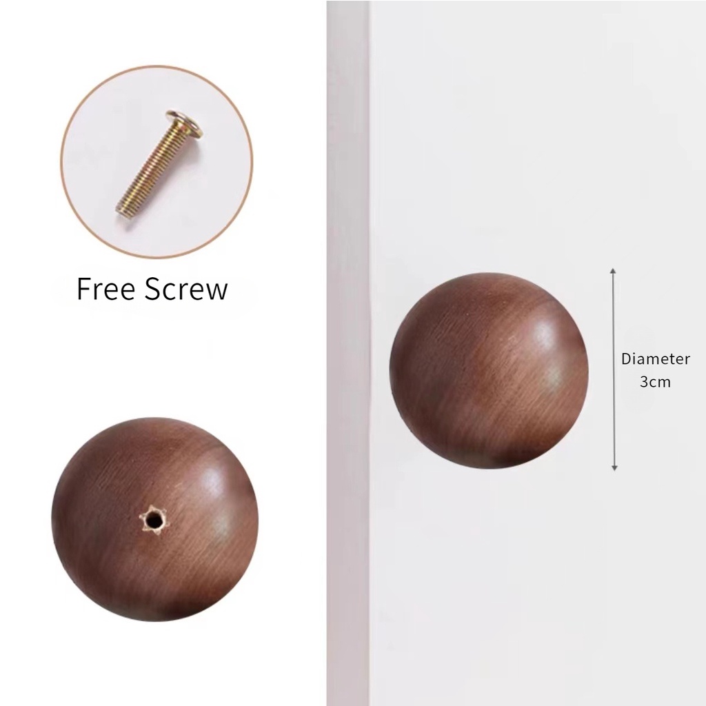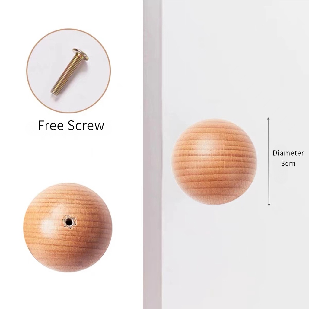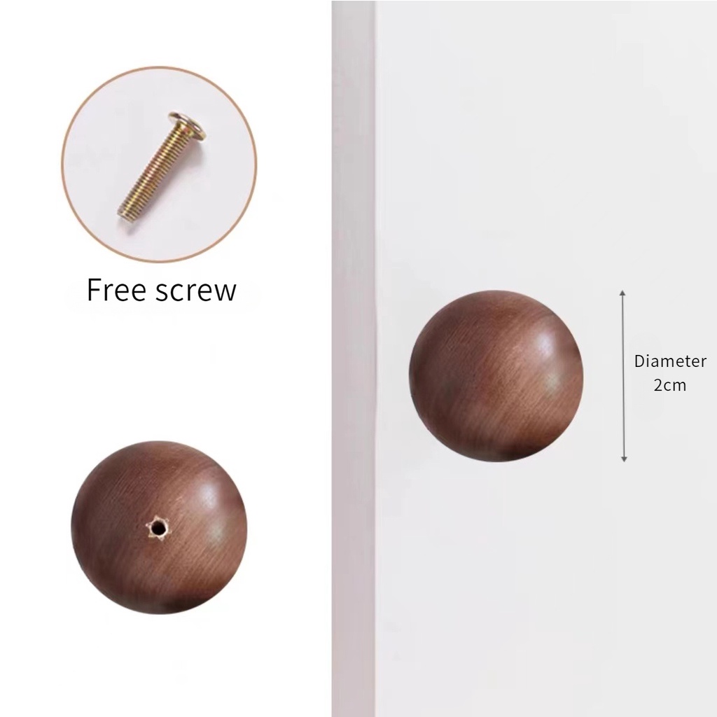 Japanese Drawer Knobs Solid Wood Wardrobe Door Handle Kitchen Cabinet Handles Single Hole Round Ball Handle Furniture Hardware