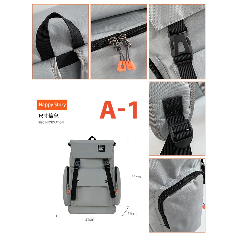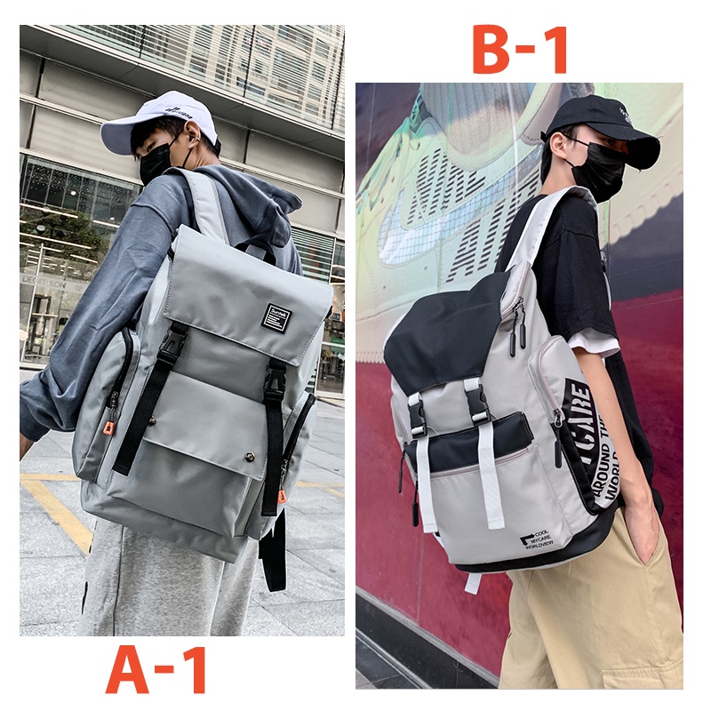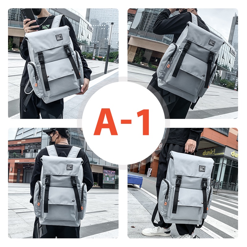 Japanese Harajuku Style Men Casual Travelling Backpack Korean Fashion Large Capacity School Bag Business Laptop Bag Waterproof Canvas Flap Bagpack Weekend Travel
