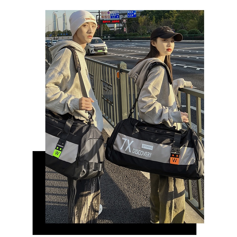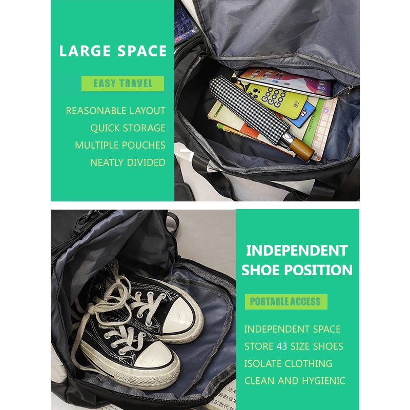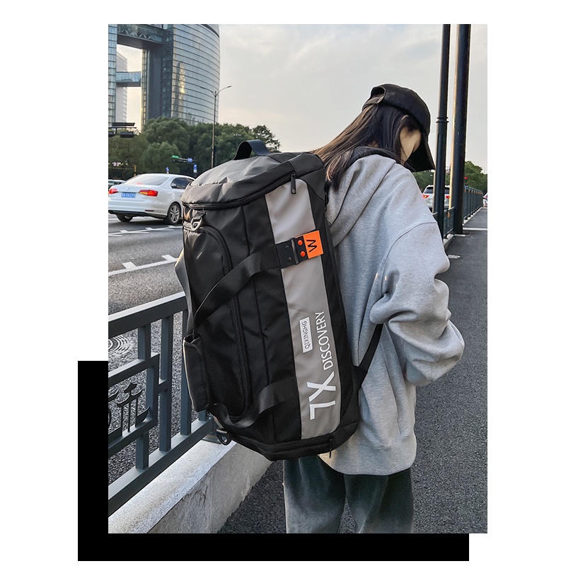 Japanese Harajuku Style Men Waterproof Travel Duffel Bag Hand Carry Large Capacity Fashion Sports Gym Bag Korean Traveling Backpack Clothing Storage Duffle Bag Weekender Bag With Shoe Storage Trolley Cabin bagpack