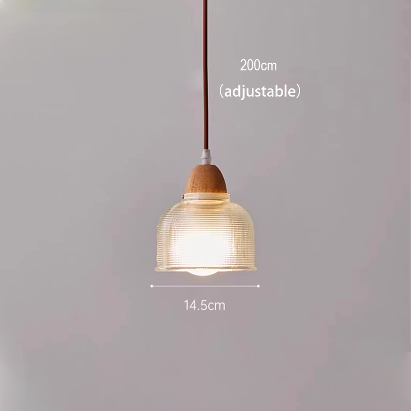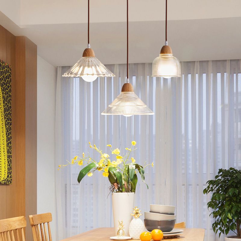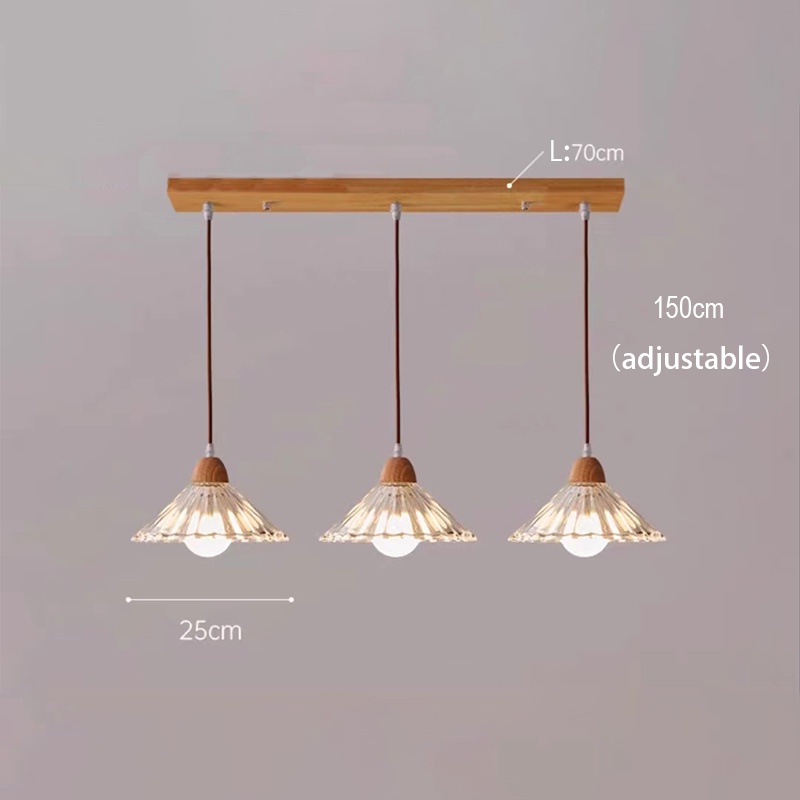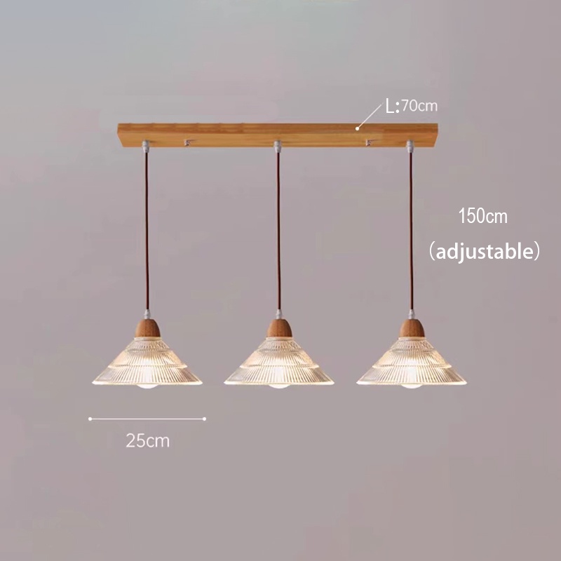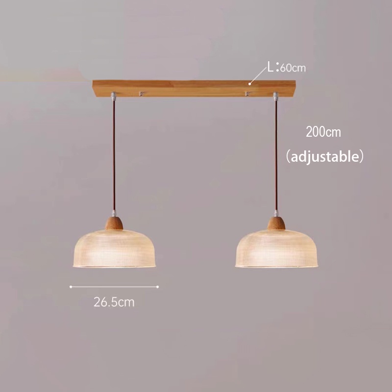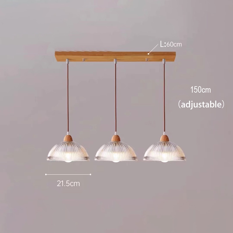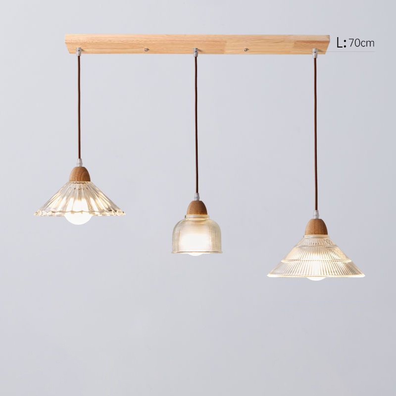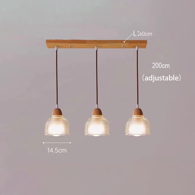 Japanese Kitchen Island Pendant Light With Clear Glass Shade, Rustic Wooden Hanging Light Fixture Dining Light Bar Counter Chandelier Light