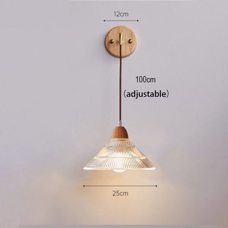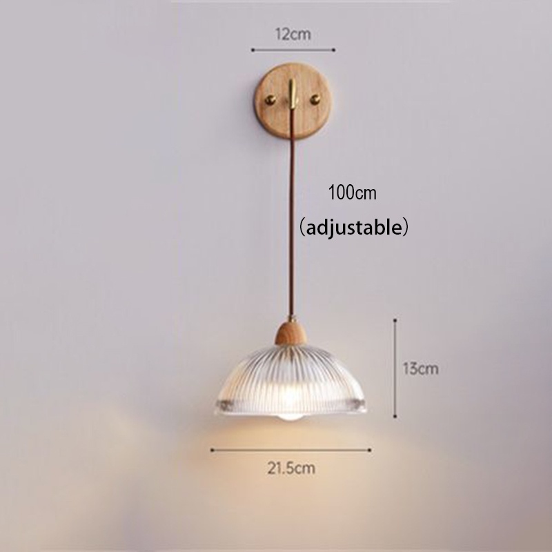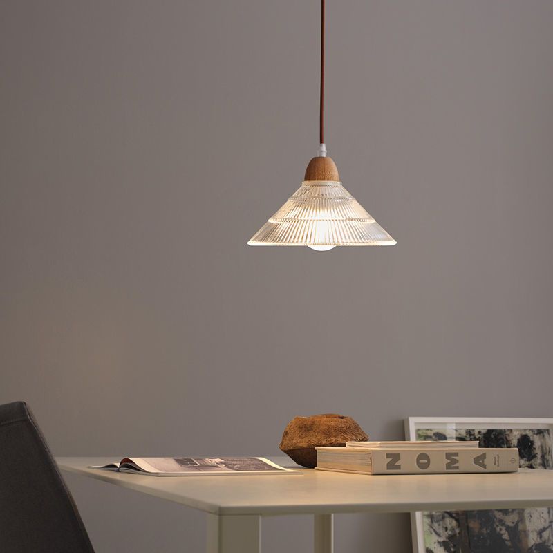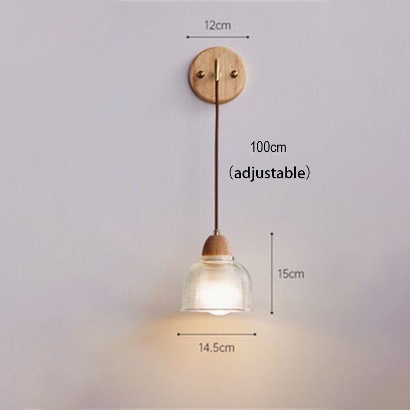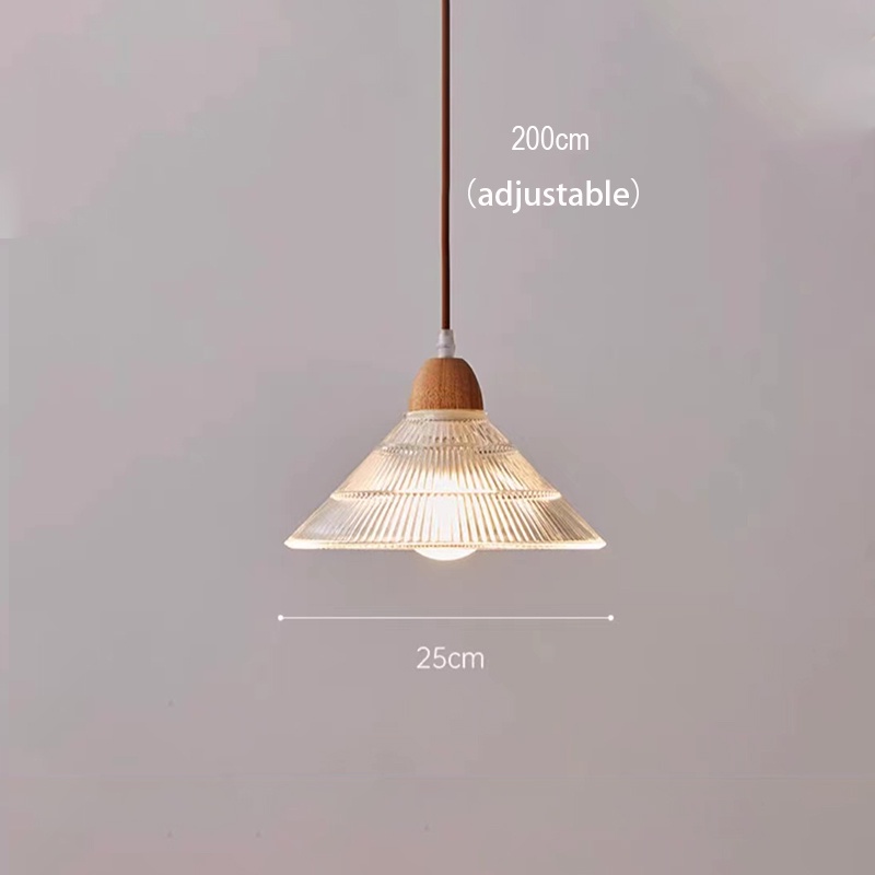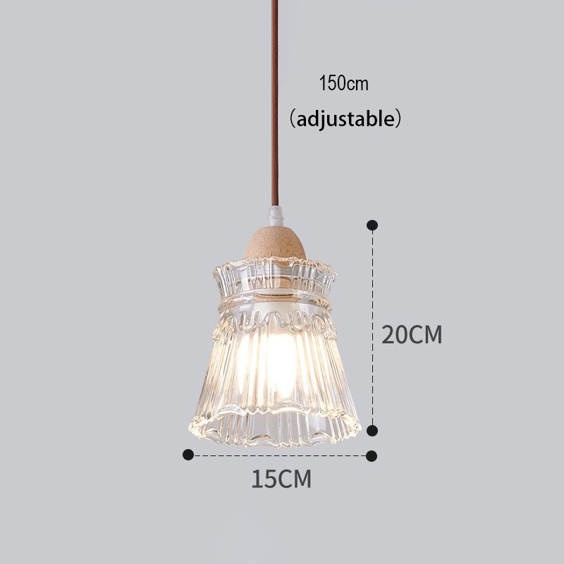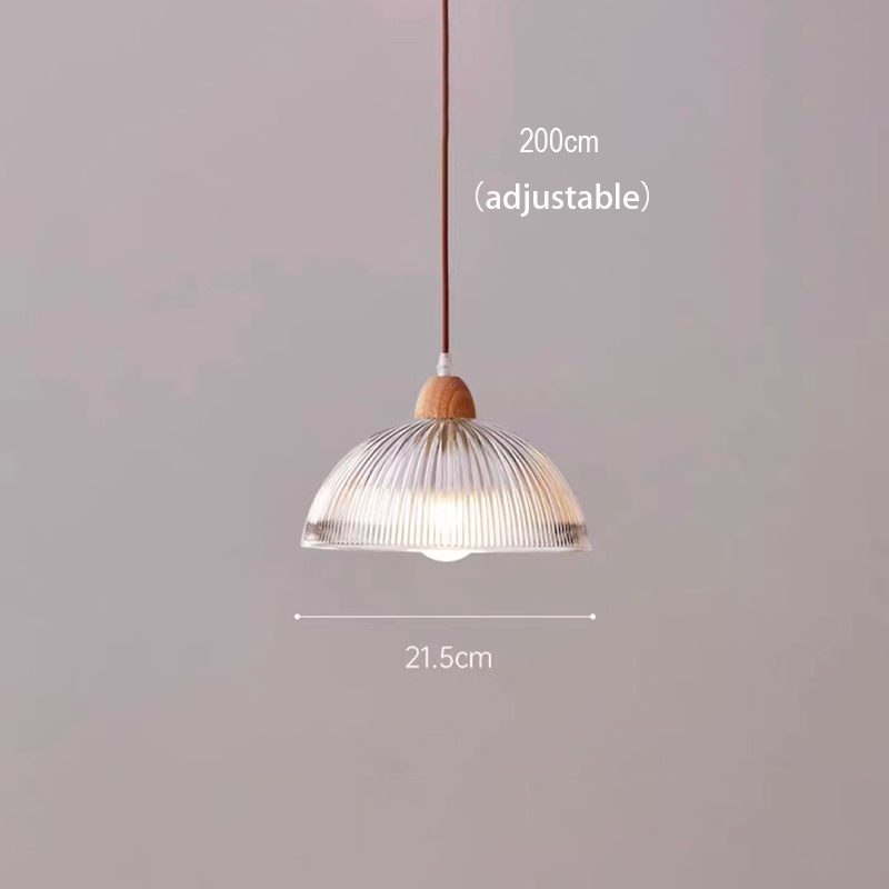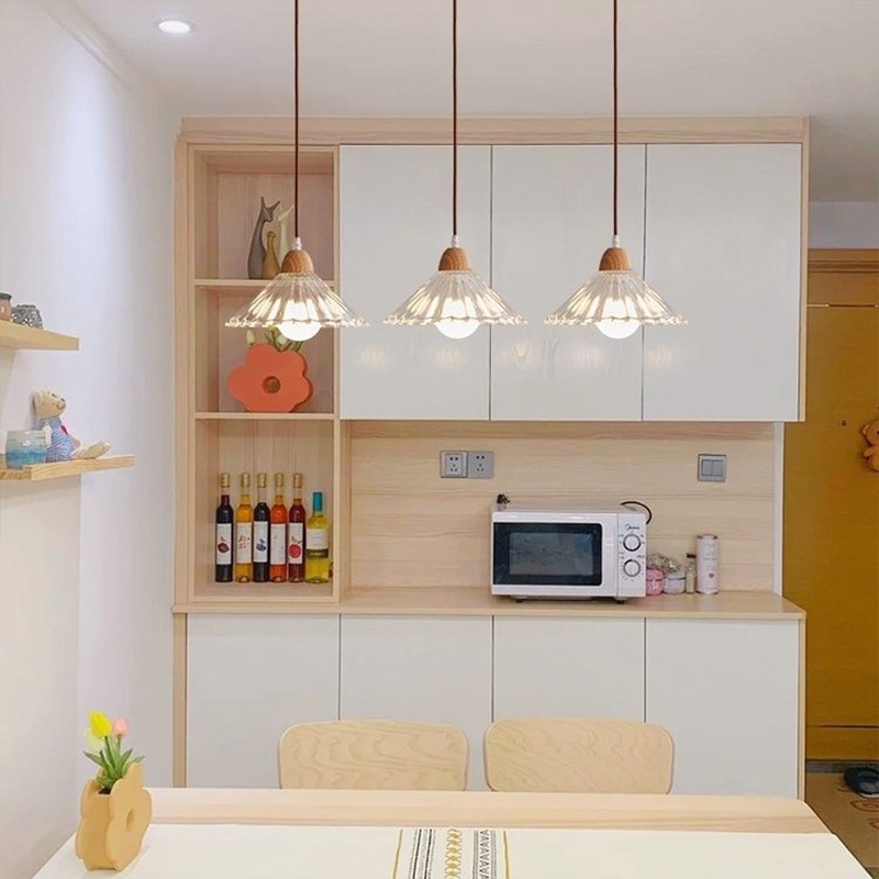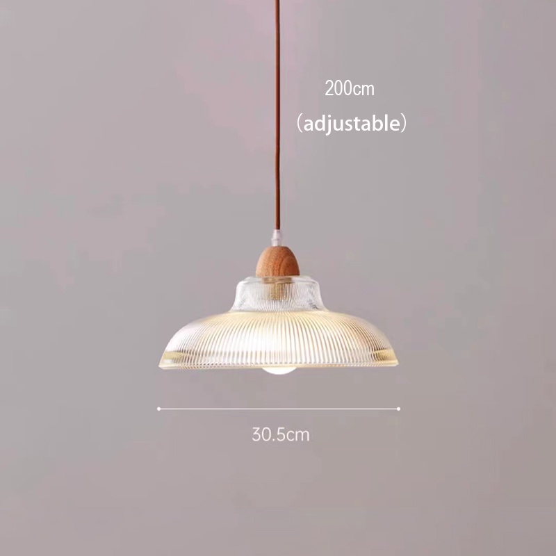 Japanese Kitchen Island Pendant Light With Clear Glass Shade, Rustic Wooden Hanging Light Fixture Dining Light Bar Counter Chandelier Light
