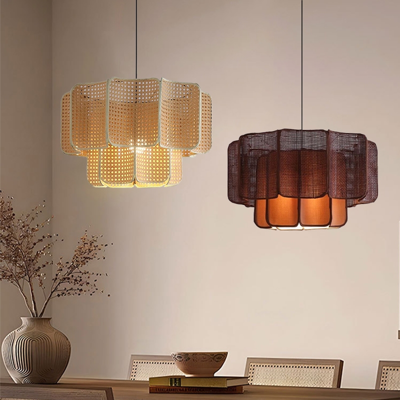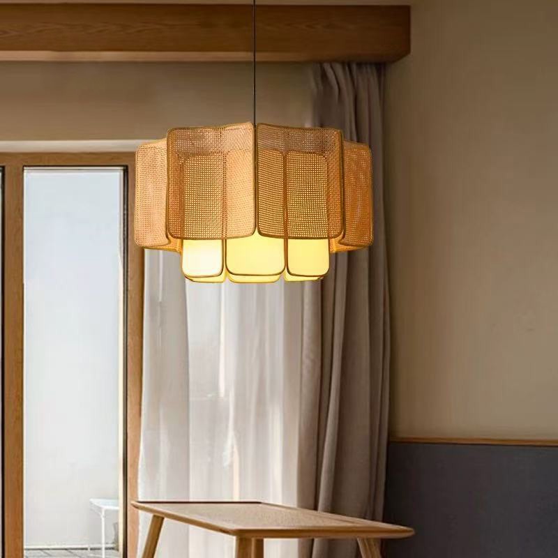 Japanese Lantern Zen-inspired Chandelier Ceiling Light Handwoven Rattan Pendant Light Retro Hanging Light For Dining Table, Kitchen Island, Tea House, Tatami, Restaurant, Cafe, Bar