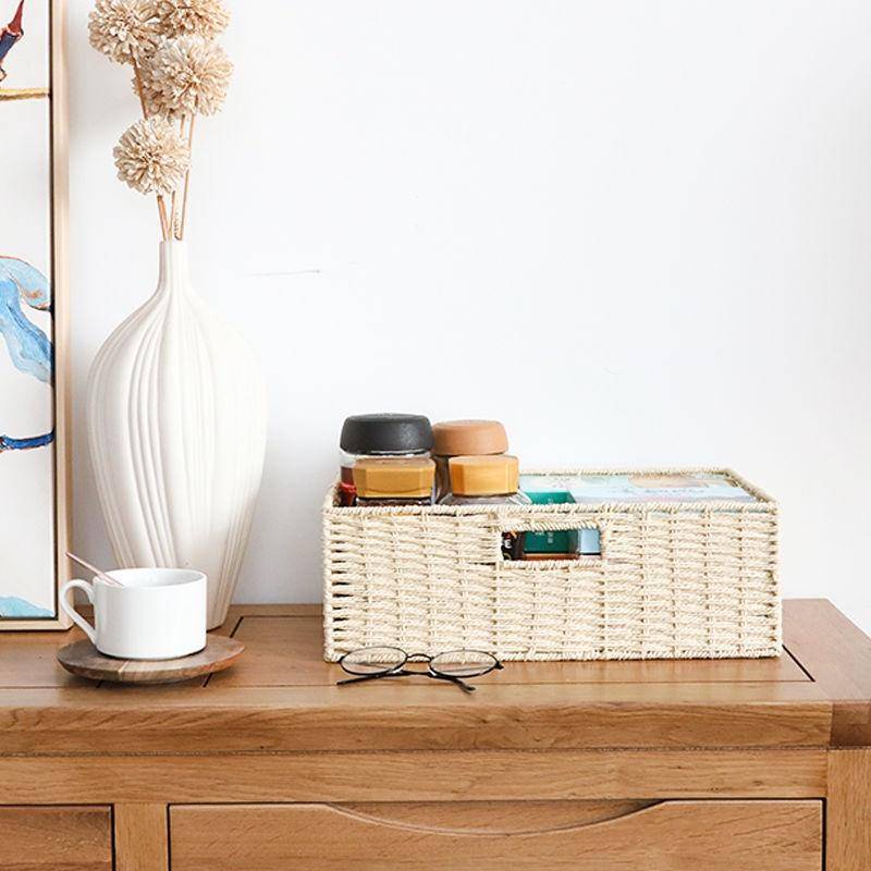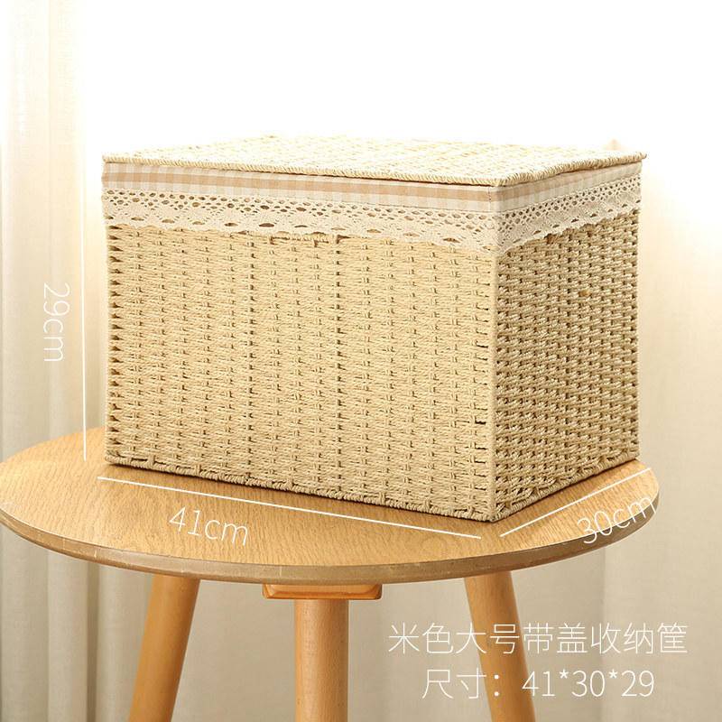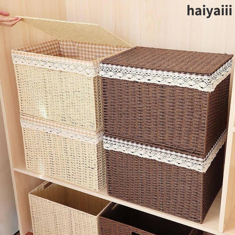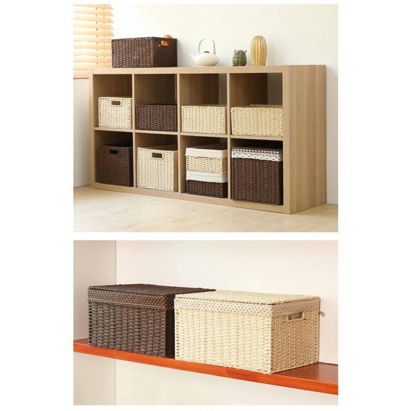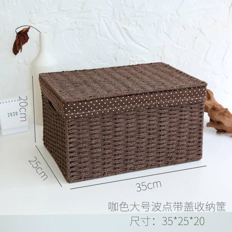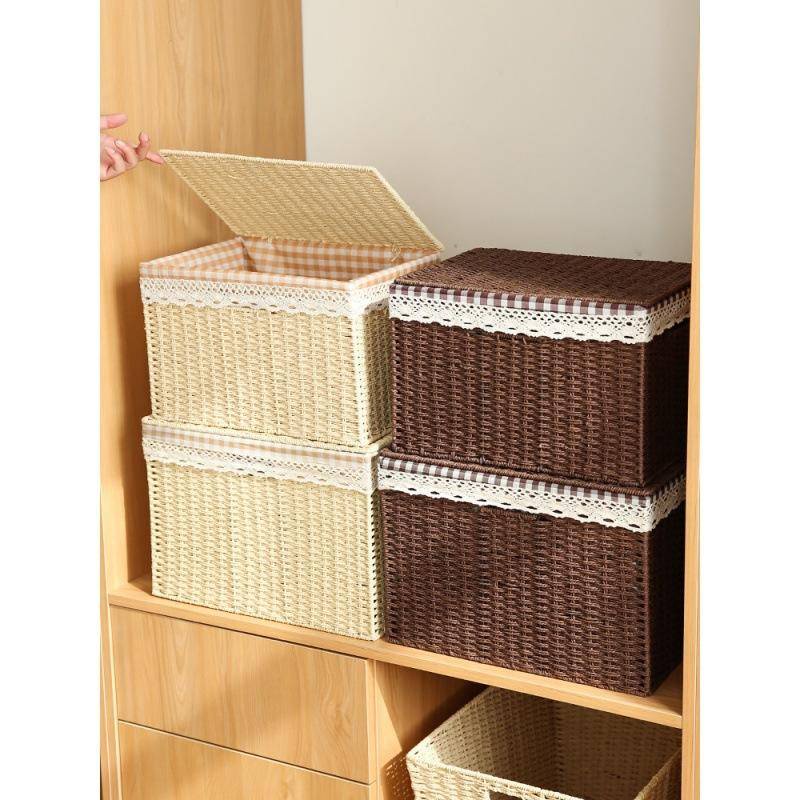 Japanese Rattan Basket Organizer Storage Box With Lid Weaved Storage Basket Clothes Sundries Organizer Basket Book Toy Snack Rattan Dustproof Storage Box
