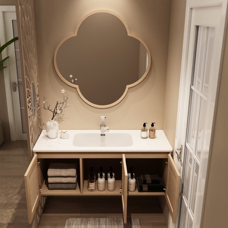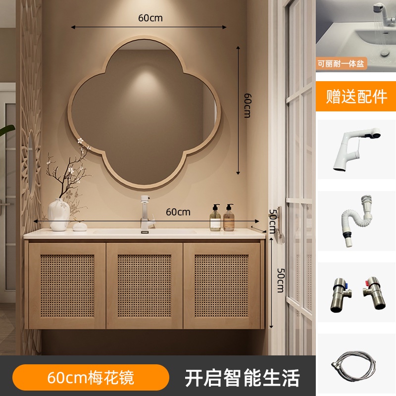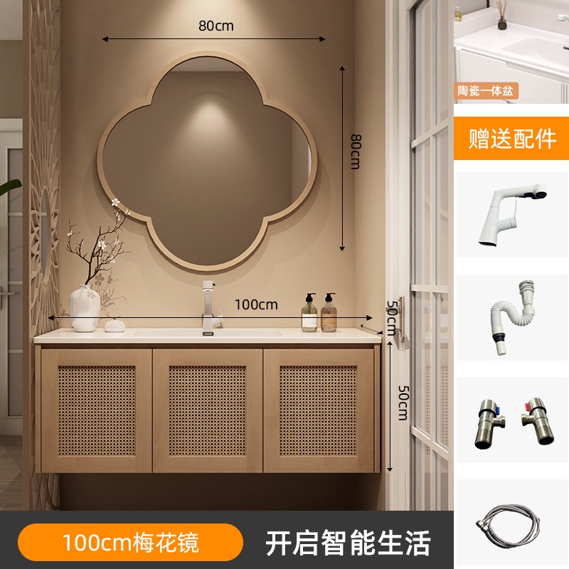Japanese Style Bathroom Toilet Sink Cabinet Set Vanity Slate Ceramic Basin with Mirror Cabinet Set Wash Pedestal Washbasin Drawer Cabinet Basin Sink