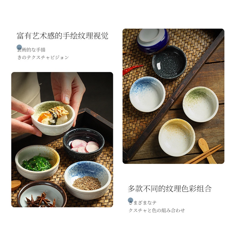 Japanese Style Ceramic Dish Household Round Seasoning Dish Dipping Dish Soy Sauce Dish Vinegar Dish Restaurant Small Dish Snack Dish Mini Seasoning Dish Cooking Dish Sushi Dish