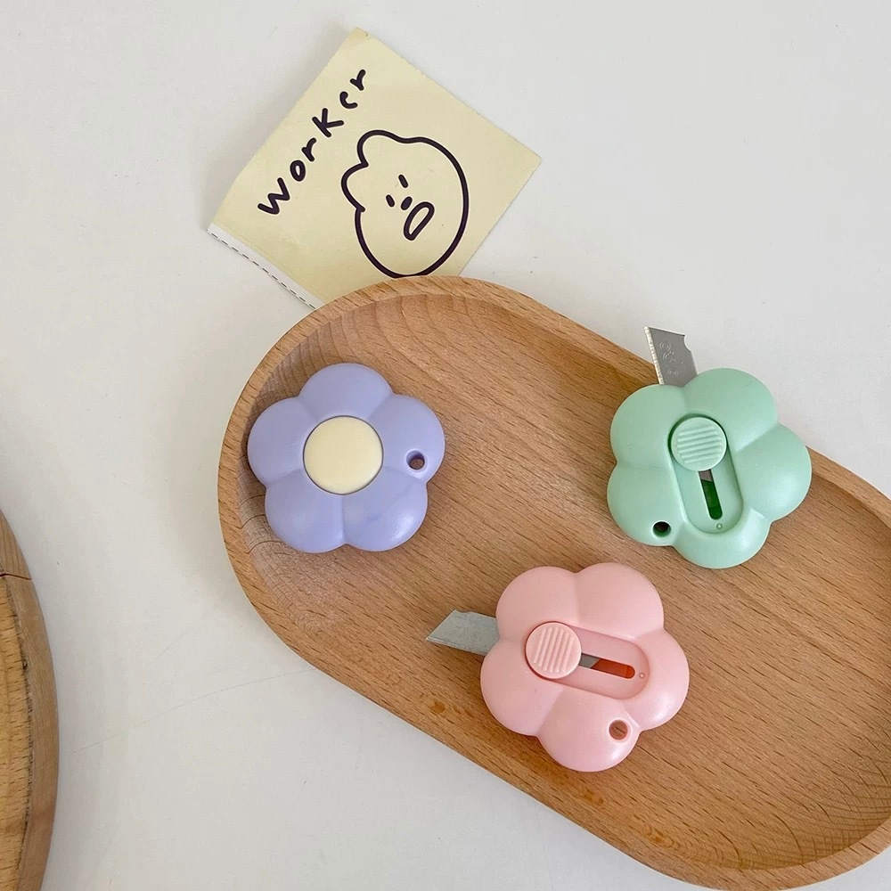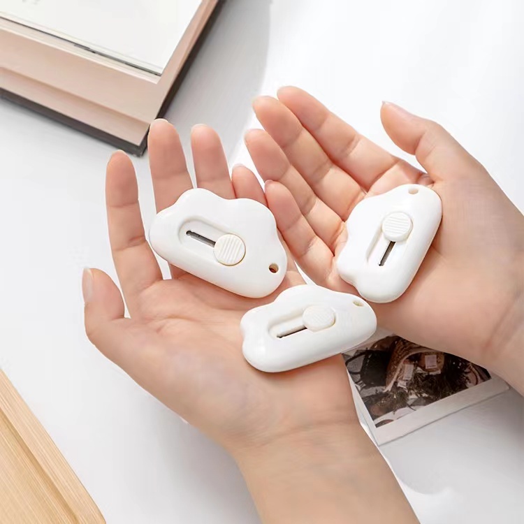Japanese Style Simple Creative Cloud Art Knife Telescopic and Portable Mini Blade Cute Girl Heart Split Express Knife