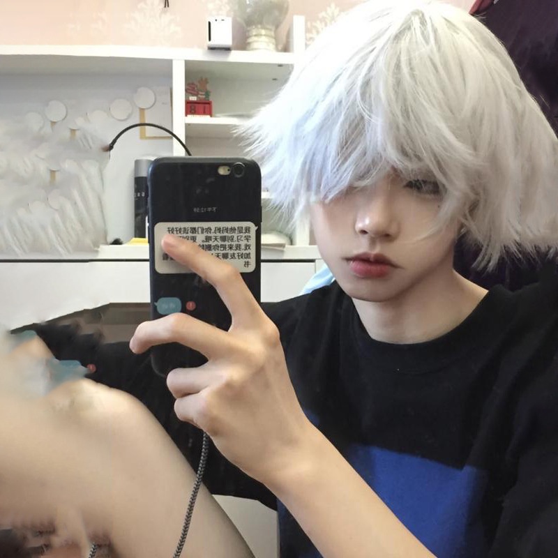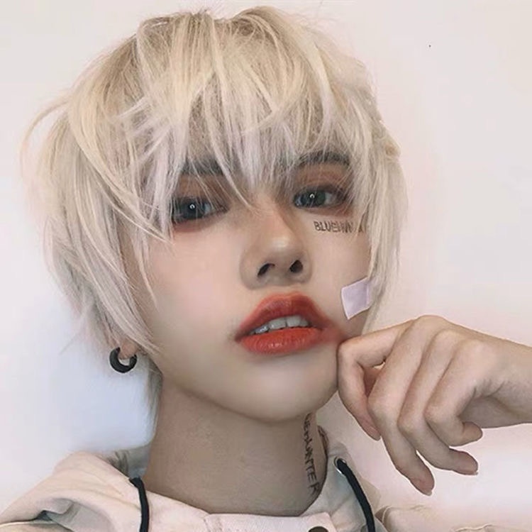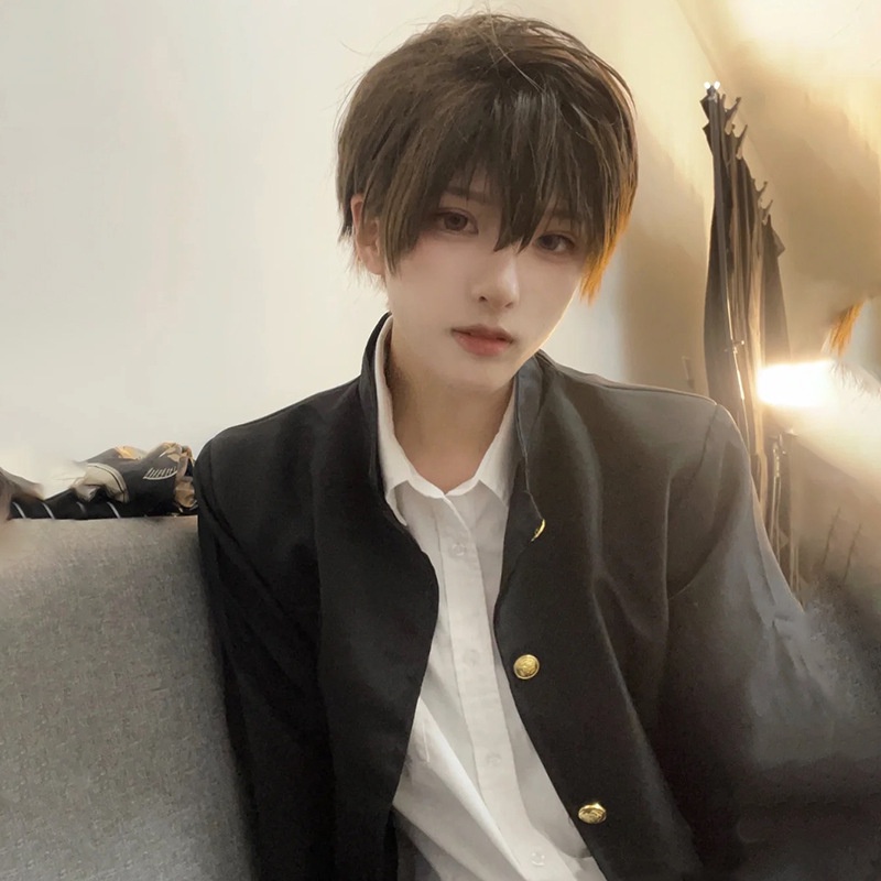 Japanese Style Synthetic Short Wigs With Bangs Cosplay Party Wig For Men Women Light Pink Black Korean Man Wig