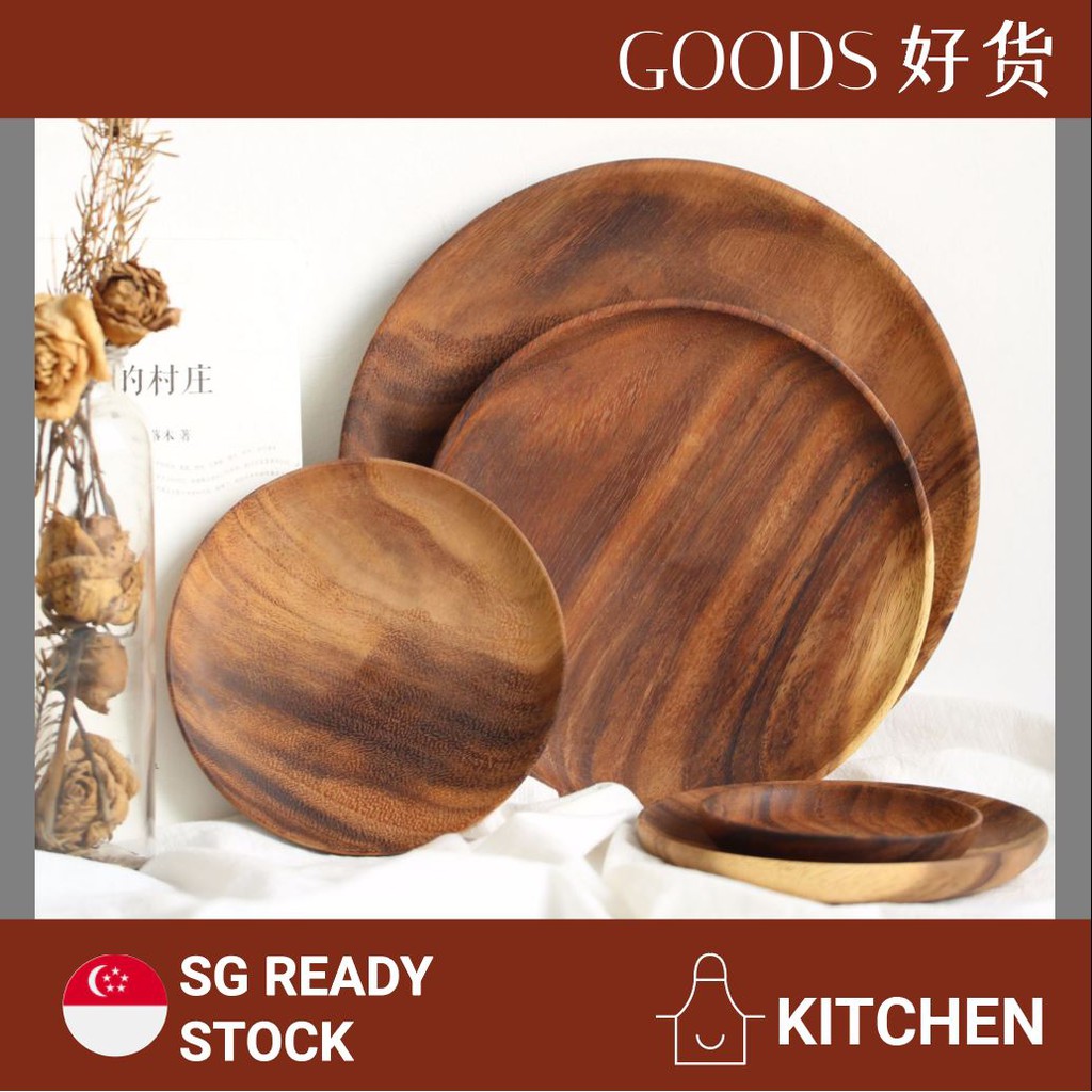 Japanese Style Wooden Plates Bowls Dinnerware Set Acacia Solid Wood Plate Bowl For Salad Rice Large Small