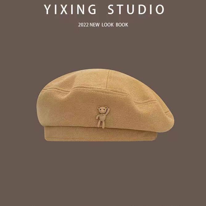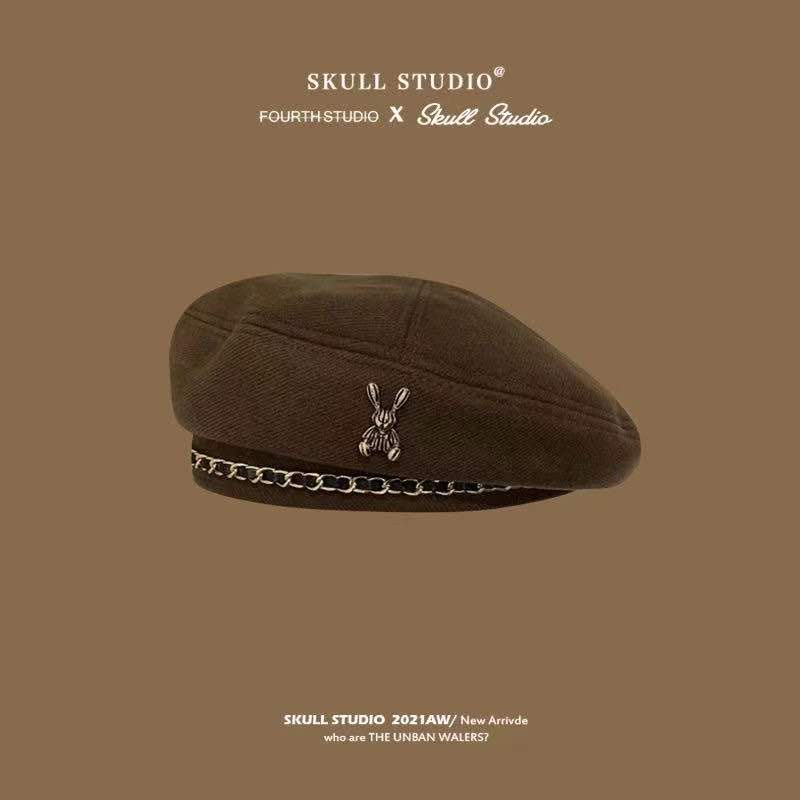 Japanese Vintage Cartoon Brown Woolen Beret Female Autumn Winter Bear Love Rabbit Trendy Classy Painter Hat Male